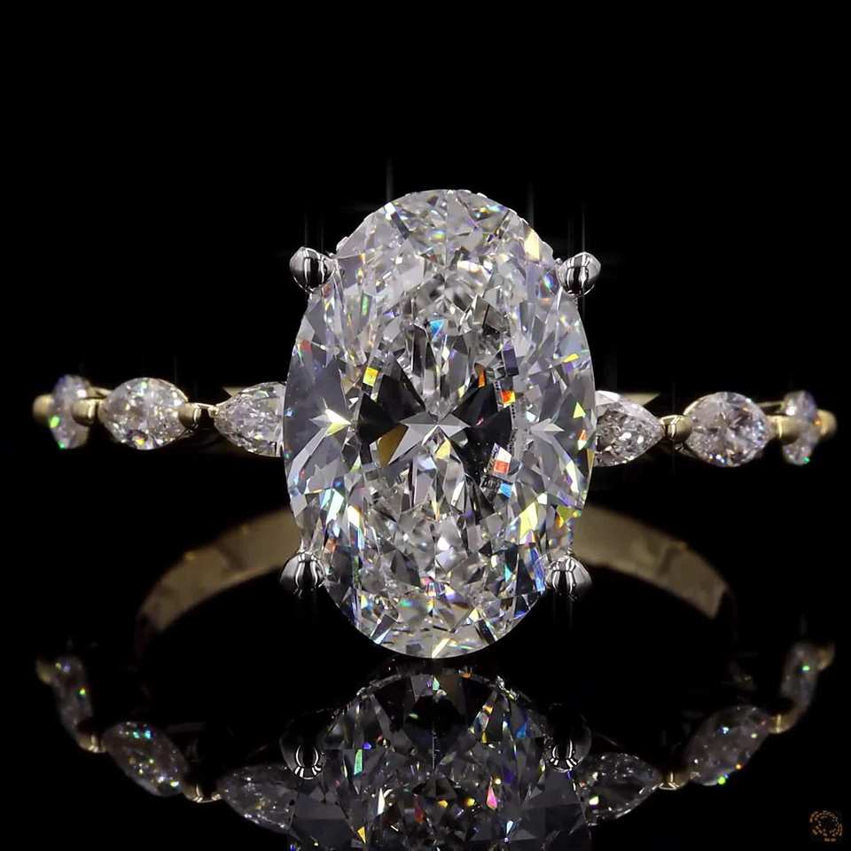 Bague de fiançailles en diamant de laboratoire taille ovale de 4,05 carats en or blanc et jaune 14 carats, ensemble de mariage demi-éternité