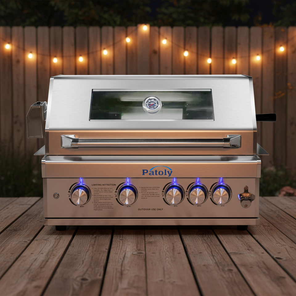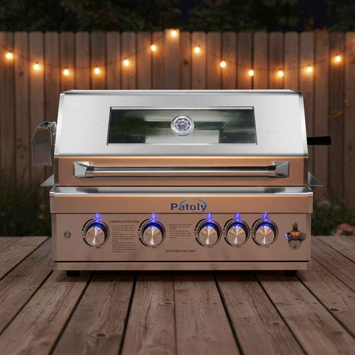 Barbecue à gaz en acier inoxydable naturel réglable 4+1 brûleurs au propane, 34 pouces, intégré pour cuisine extérieure