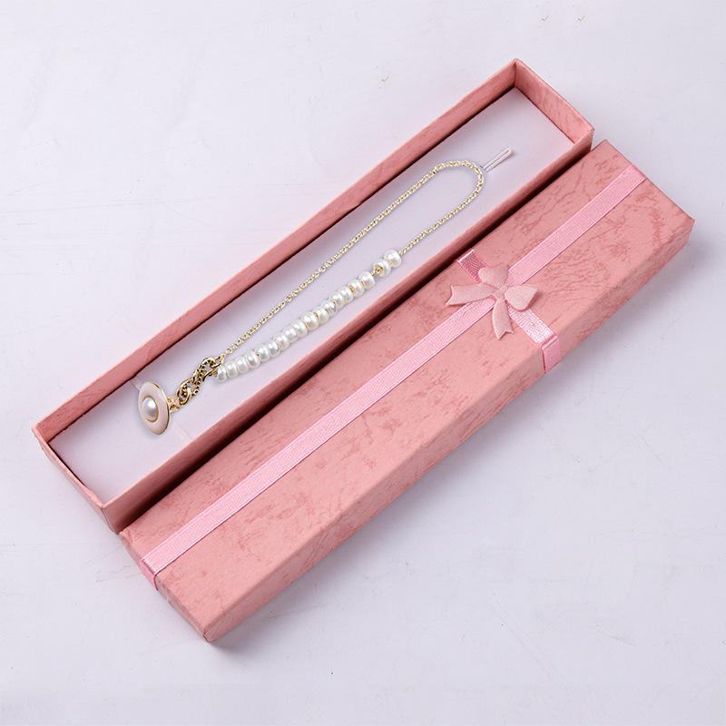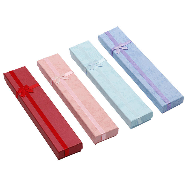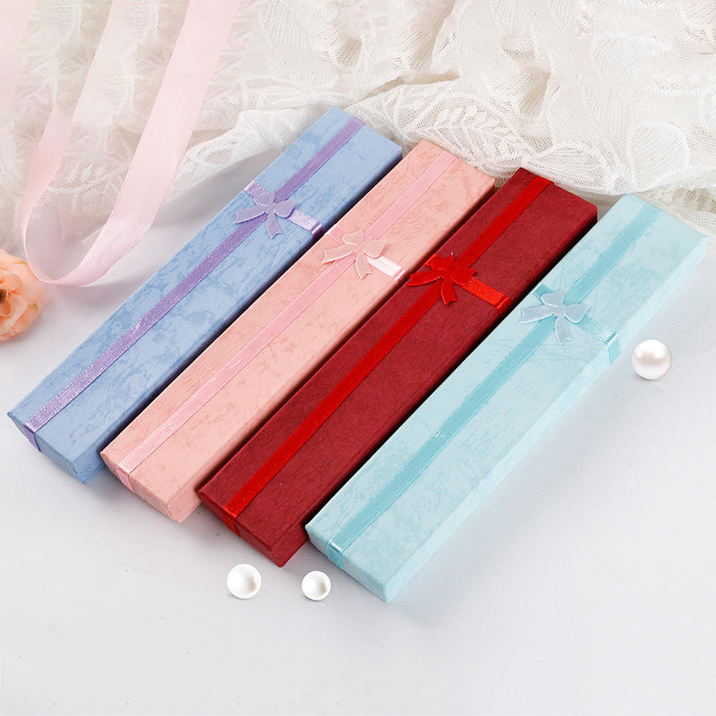 Boîte à bijoux simple 4*20cm Boîte d'emballage exquise avec nœud créatif Boîte cadeau pour collier et bijoux