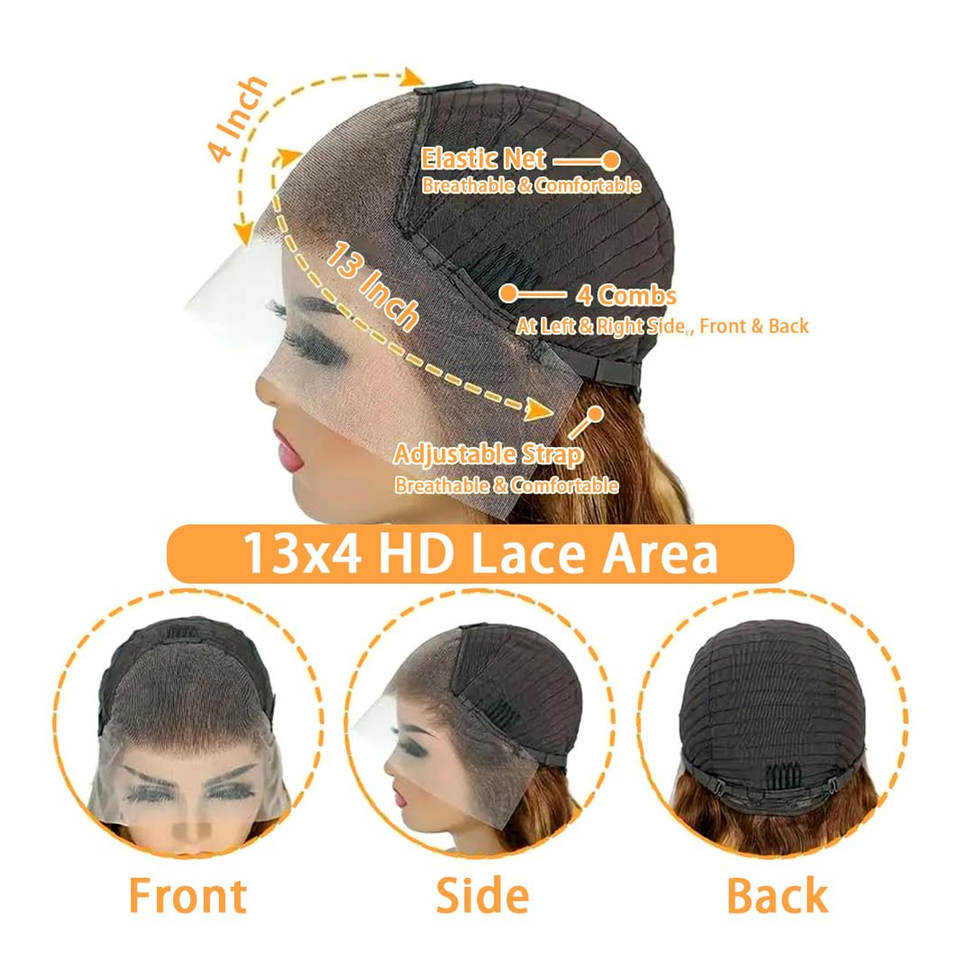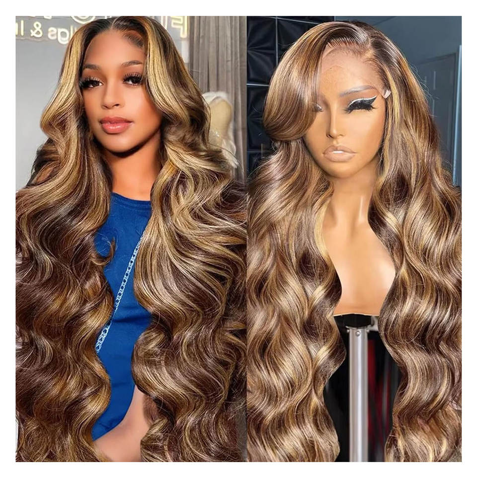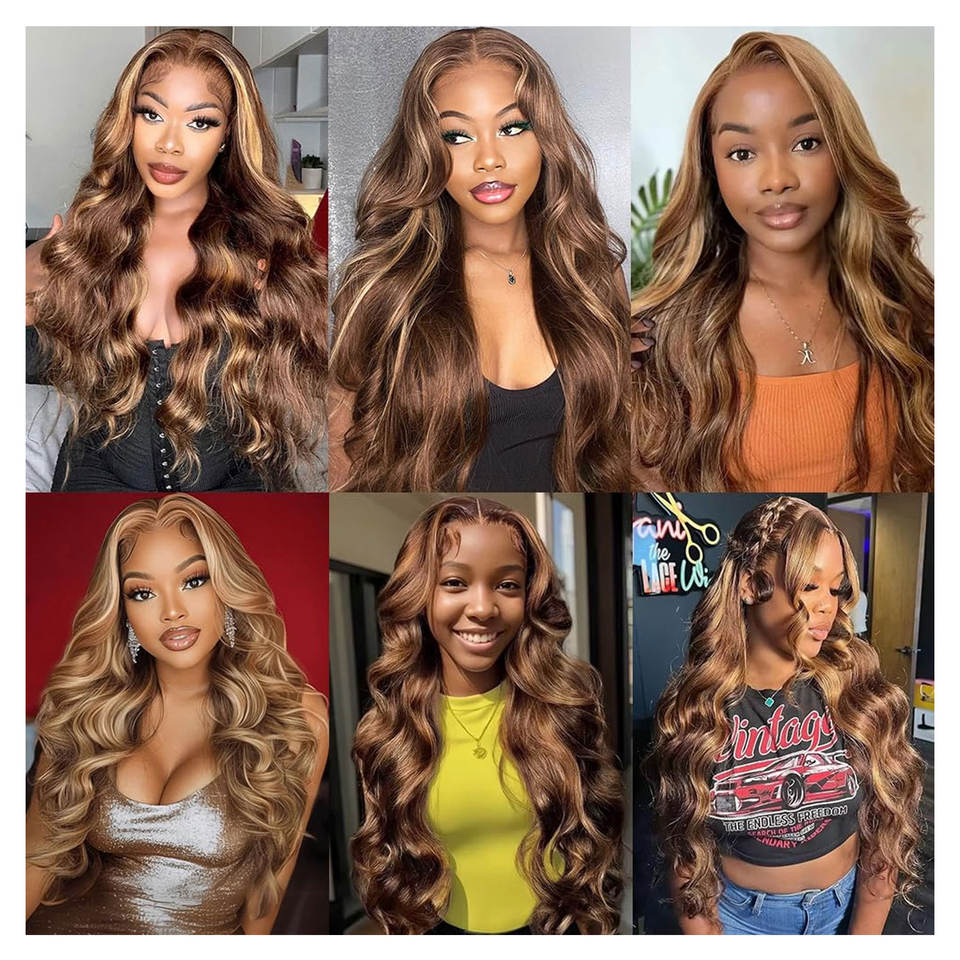 4/27 Highlight Honey Blonde Body Wave Lace Front Wig Human Hair for Women HD Transparent Pre Plucked Hairline 180% Density