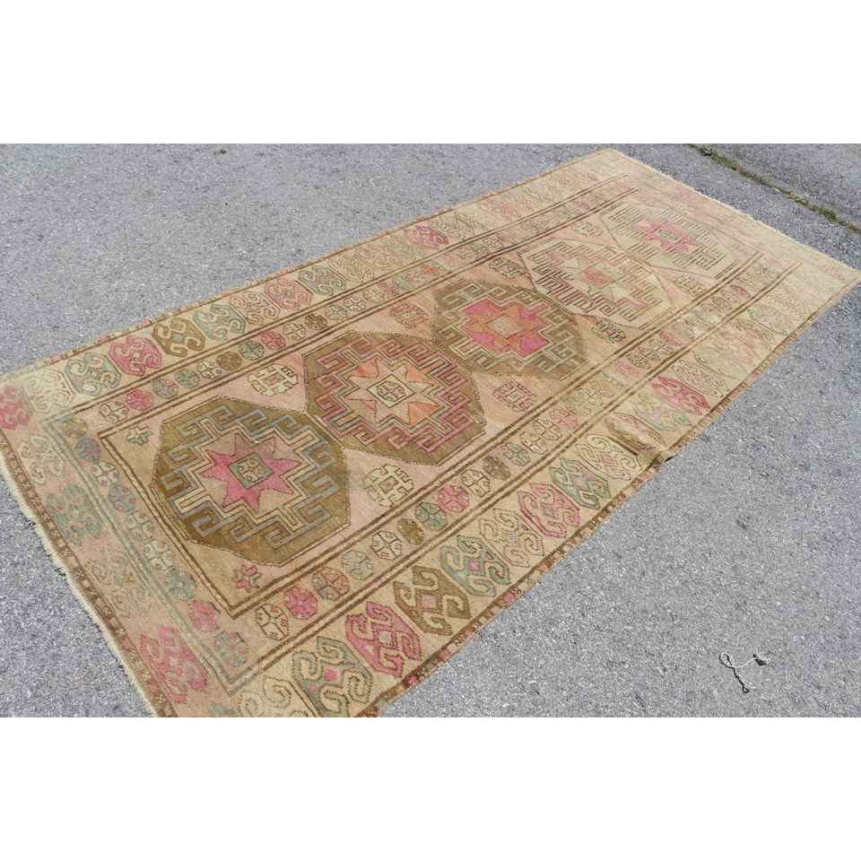 Tapis turc 4,2 x 9,8 pieds, grand tapis vintage, tapis brun rose style sud-ouest