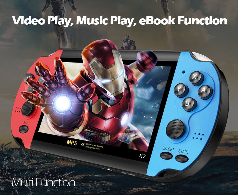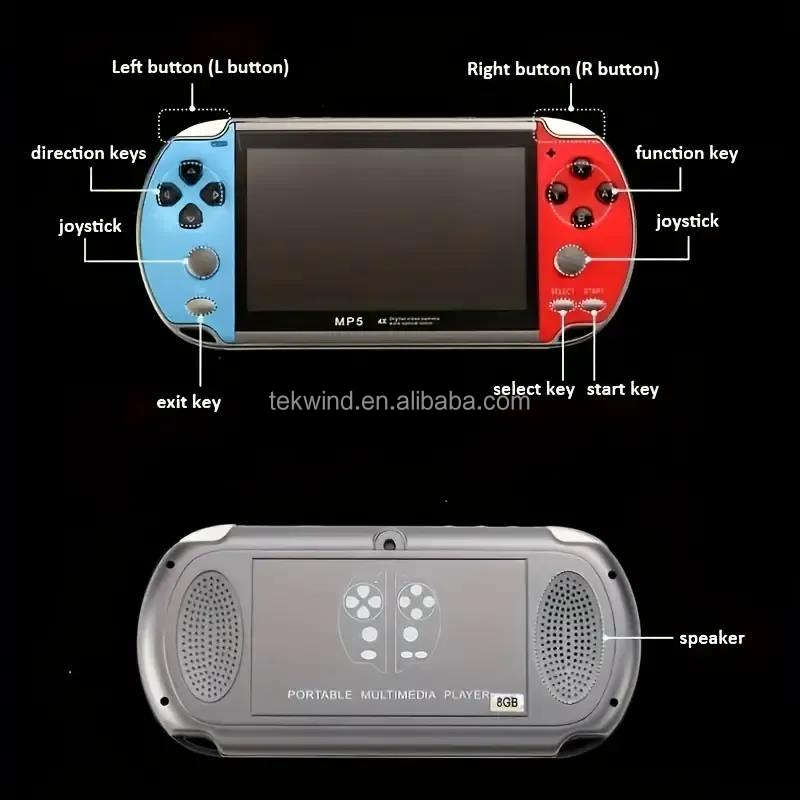 Console de jeu portable rétro X7 avec écran HD de 4,3/5,1 pouces, lecteur MP5 de poche classique 8 Go, console de jeu mini PSP Plus