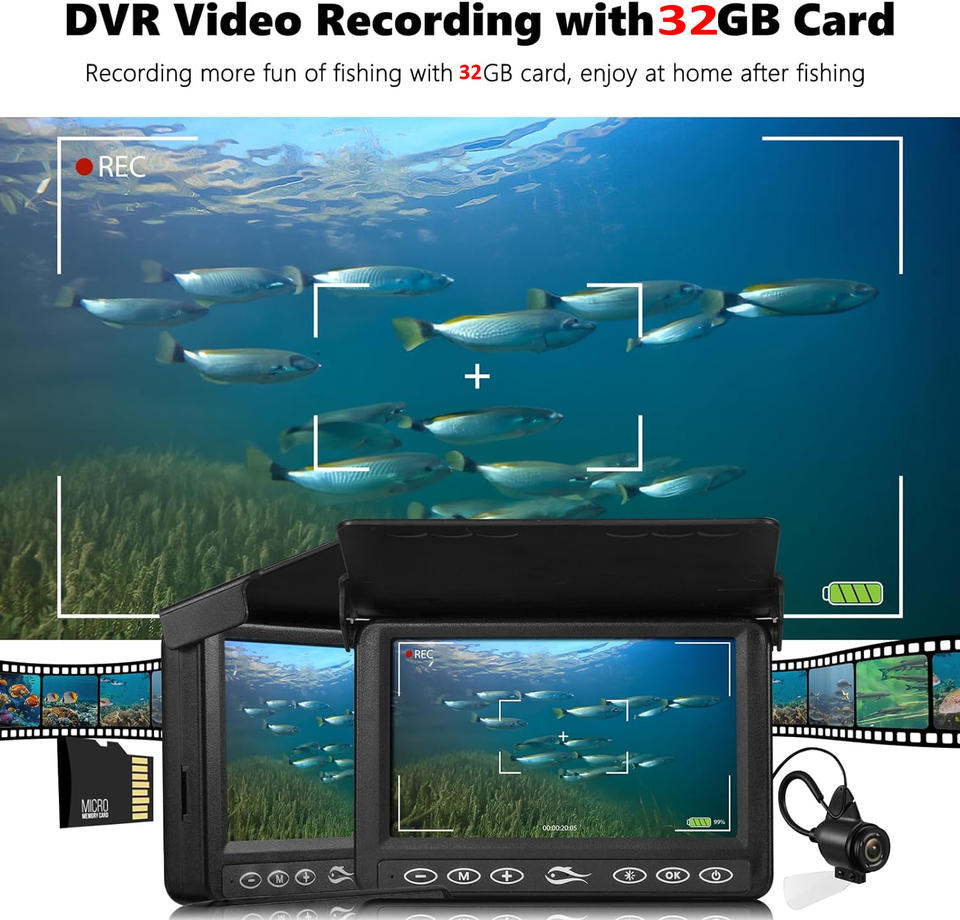 Détecteur de poisson visuel 4.3 pouces 15m vision nocturne infrarouge sous-marine HD moniteur de caméra de pêche