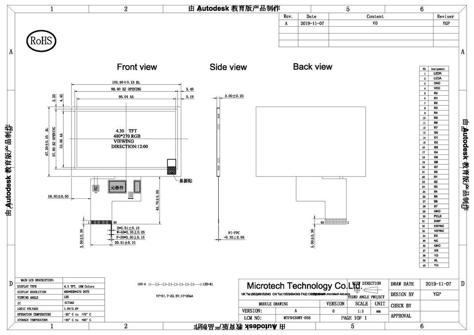 Les modules LCD TFT de 4.3 pouces affichent l'interface RVB 480*272 avec l'écran tactile RTP CTP en option pour la machine de présence de temps