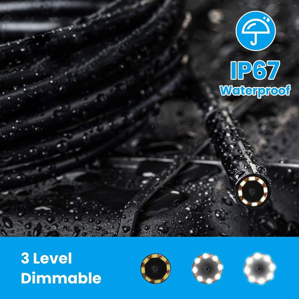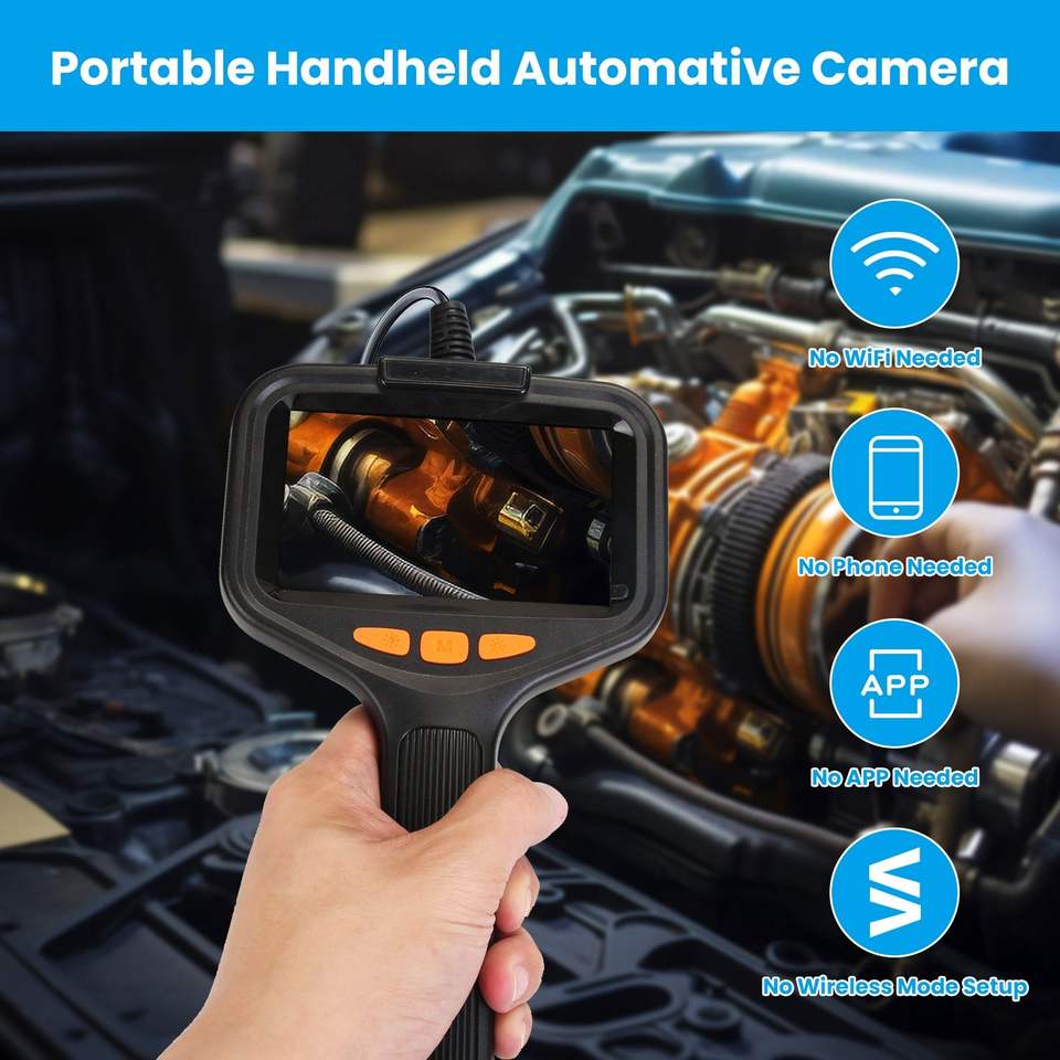 Caméra d'inspection 4,3 pouces avec lumière, câble articulé de 5 m, endoscope boroscope, 2 modes, 3 niveaux de luminosité réglables, outil d'inspection automobile