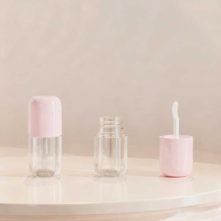4.3ml Round Lip Gloss Lip Oil Tube with Pink Cap and Fine Brush Wand Customizable Cosmetic Packaging