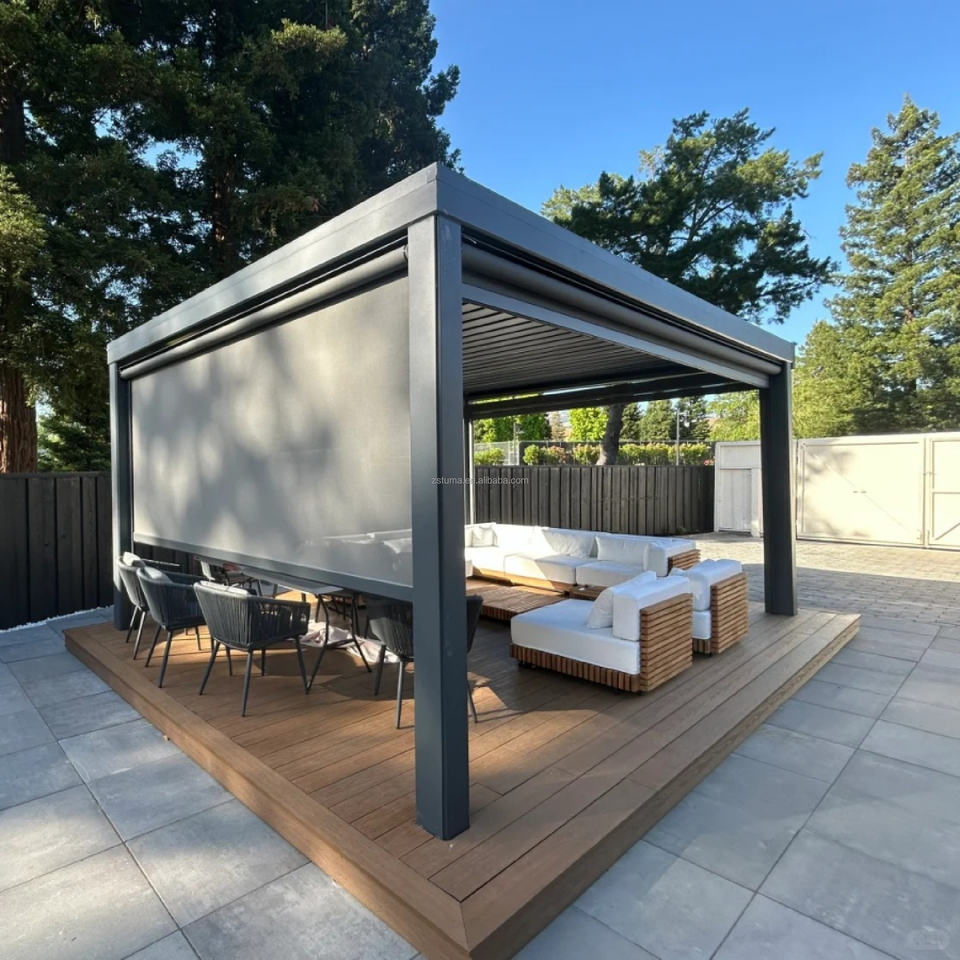 100% waterproof aluminum retractable louvered roof, Easy to assemble, environmentally friendly, anti-corrosive, waterproof, rodent-resistant