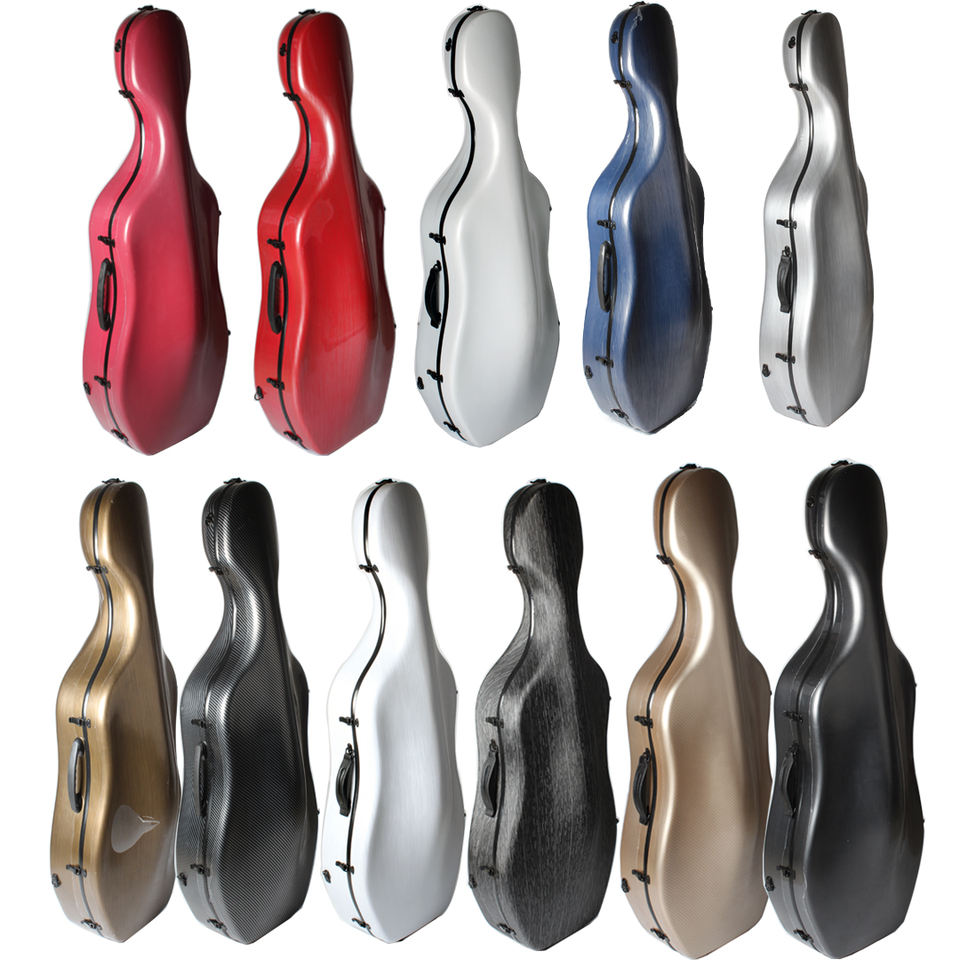 Étui rigide pour violoncelle 4/4 en fibre de verre, plusieurs couleurs au choix