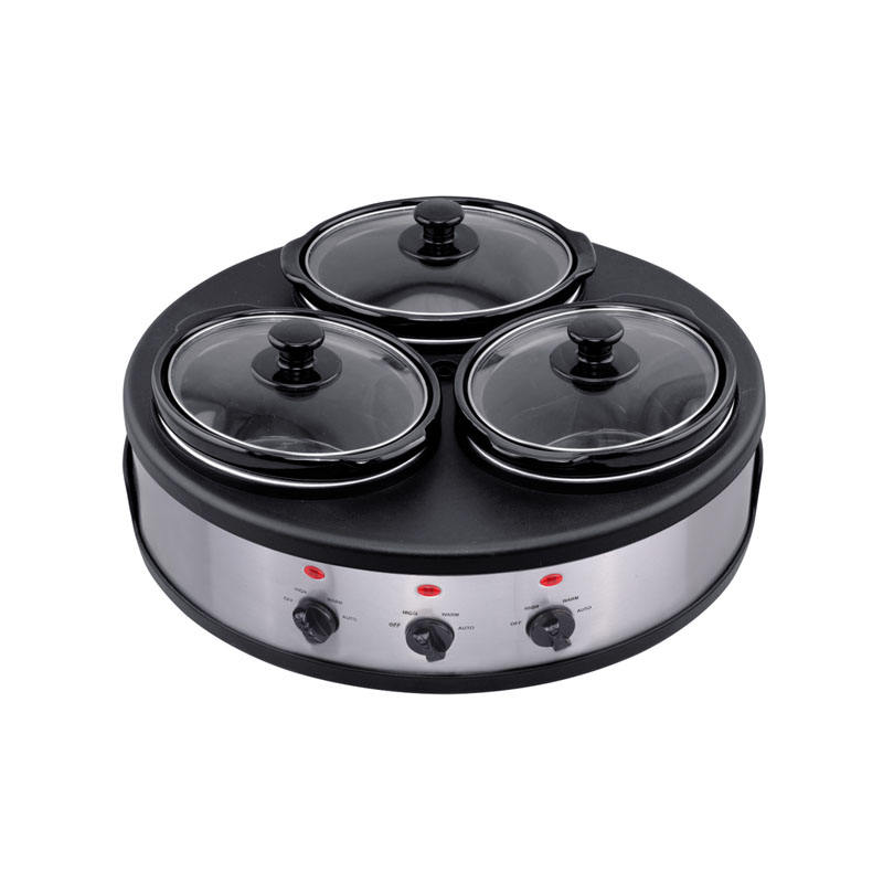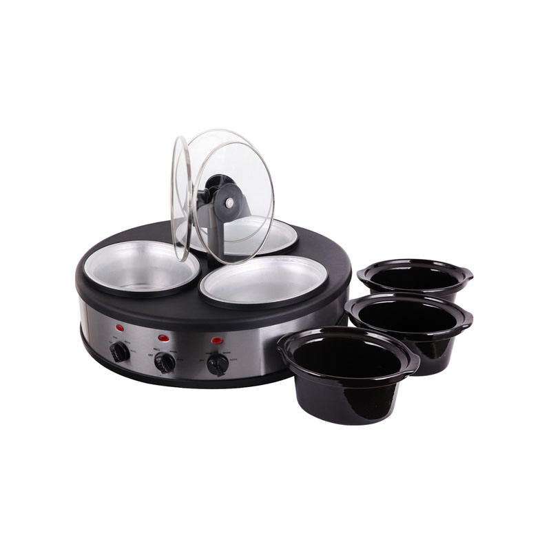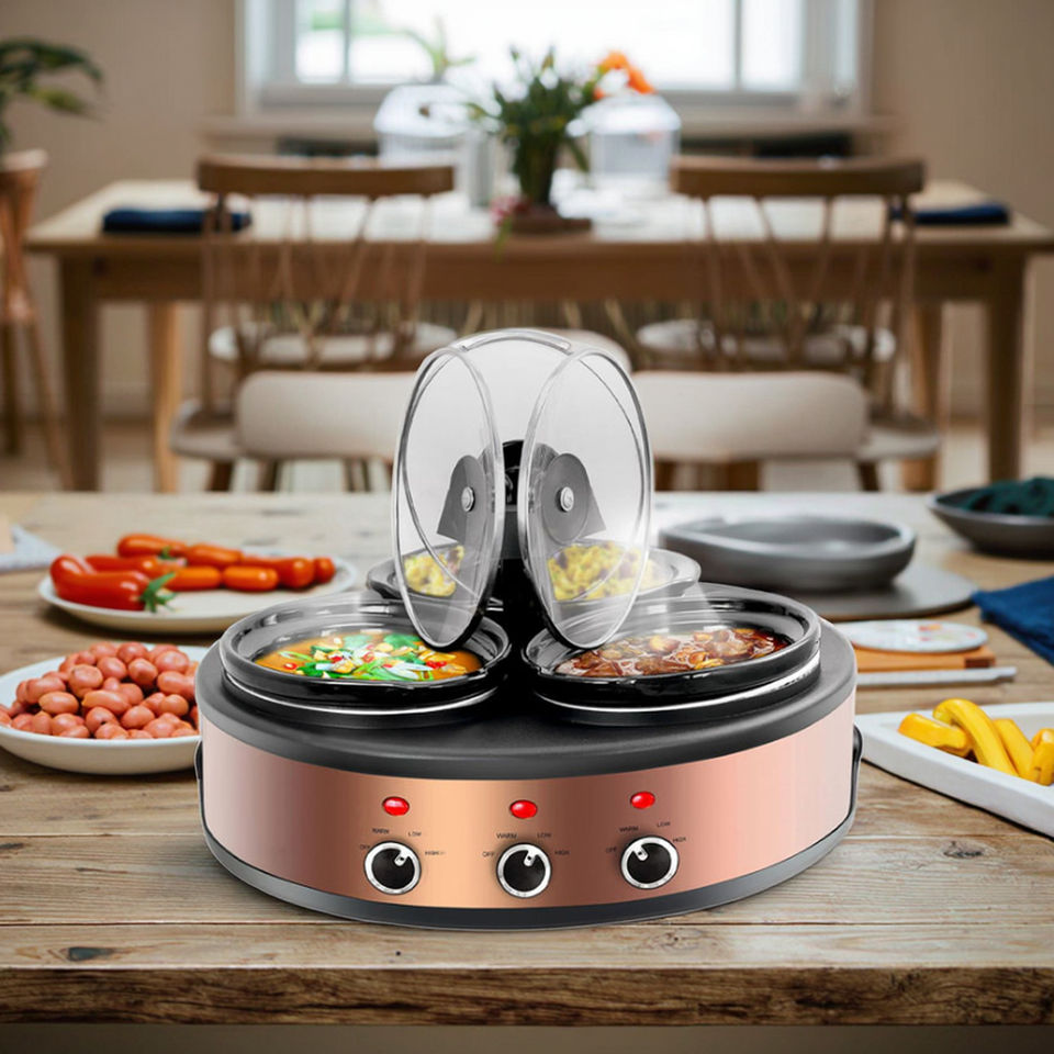 Mijoteuse triple de 4.5 litres avec couvercle en verre détachable 3 pots intérieurs pour buffet et réunions de famille pour la préparation des repas