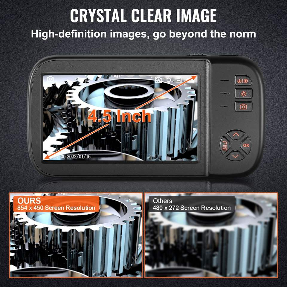 Caméra d'inspection industrielle avec écran de 4,5 pouces, 1080P, triple objectif et 10 LED, étanche IP67, endoscope