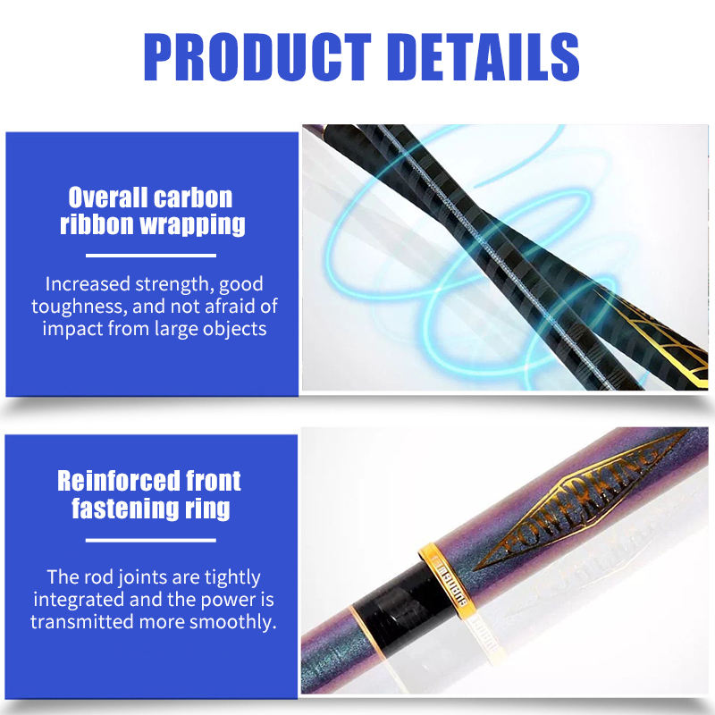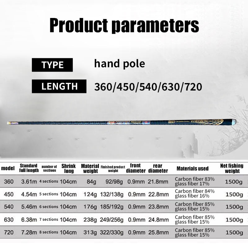 Canne à pêche en fibre de carbone GW de 4,5 m, 5,4 m, 6,3 m