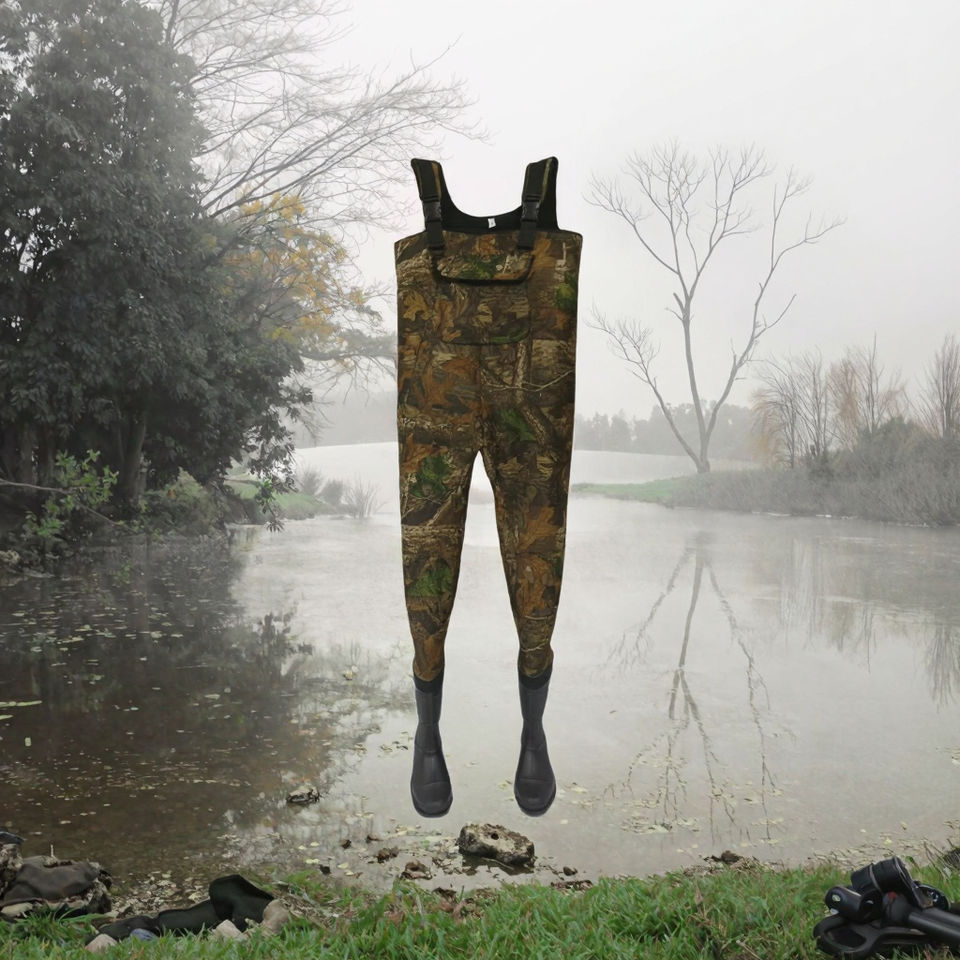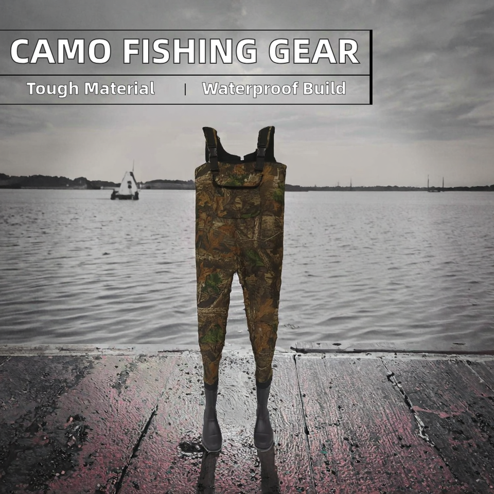 4.5mm Cunsom PVC cuissardes de pêche grandes poches coupe-vent imperméable Camo néoprène bretelles pour la chasse grandes tailles disponibles