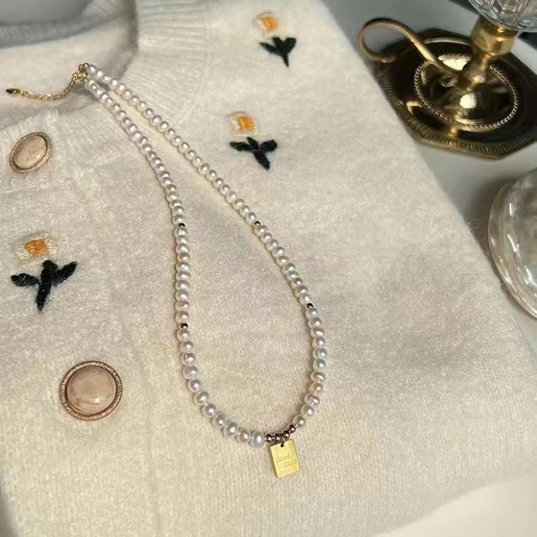 4-5mm Freshwater Pearl Starry Sky Necklace with 18K Gold Lock Exquisite Zhuji Crystal Clear Spaced Neck Chain Fine Pendant