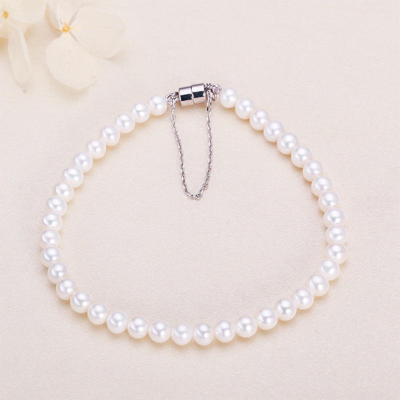4-5mm Zhuji Freshwater Pearl Bracelet with S925 Silver Stone Buckle Simple Plain Color Real Pearl Necklace