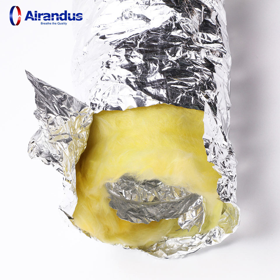 Conduit flexible isolé en aluminium emballé individuellement de 4'', 6'', 8'' pour système de ventilation CVC, matériau d'isolation thermique