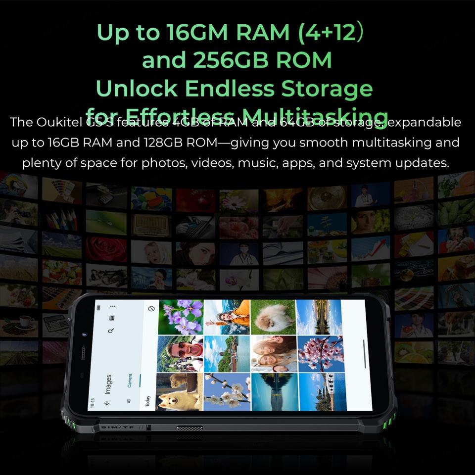 Nouveau design tendance Oukitel G5 Téléphone robuste pour le camping en extérieur Double appareil photo 5MP avant 13MP principal Batterie 6300mAh Android 14 Téléphone portable 4+64Go
