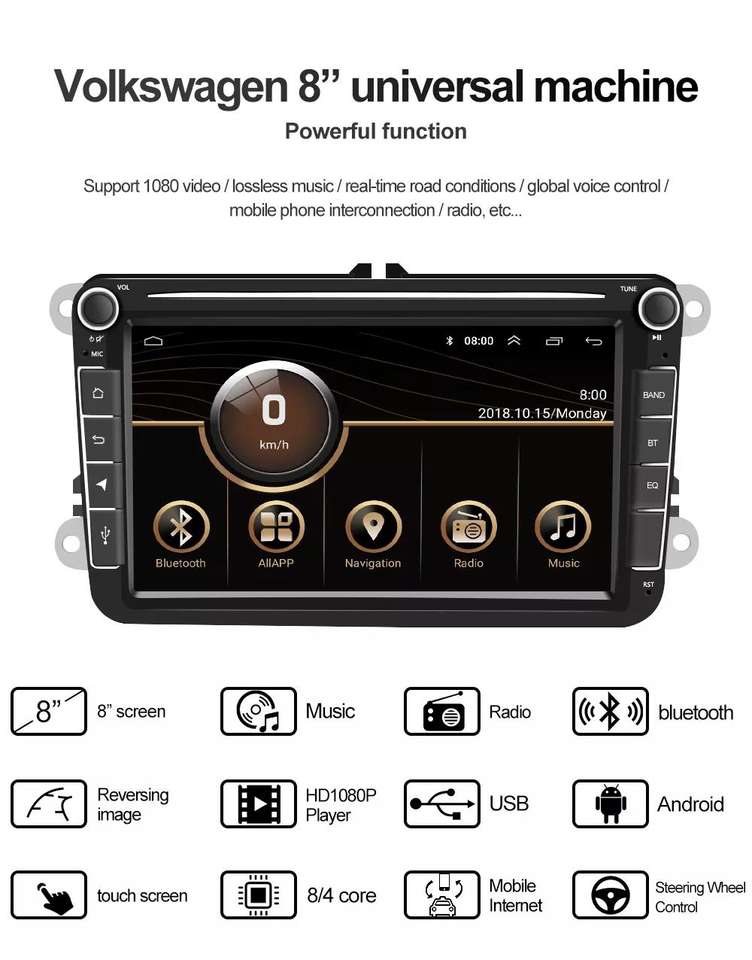 GPS, Stéréo, SANS MAINS, DSP, Lien de miroir, Microphone intégré, Écran partagé, Gestionnaire de fichiers, Hi-Res Audio, Volant de voiture de ContrôleFonction