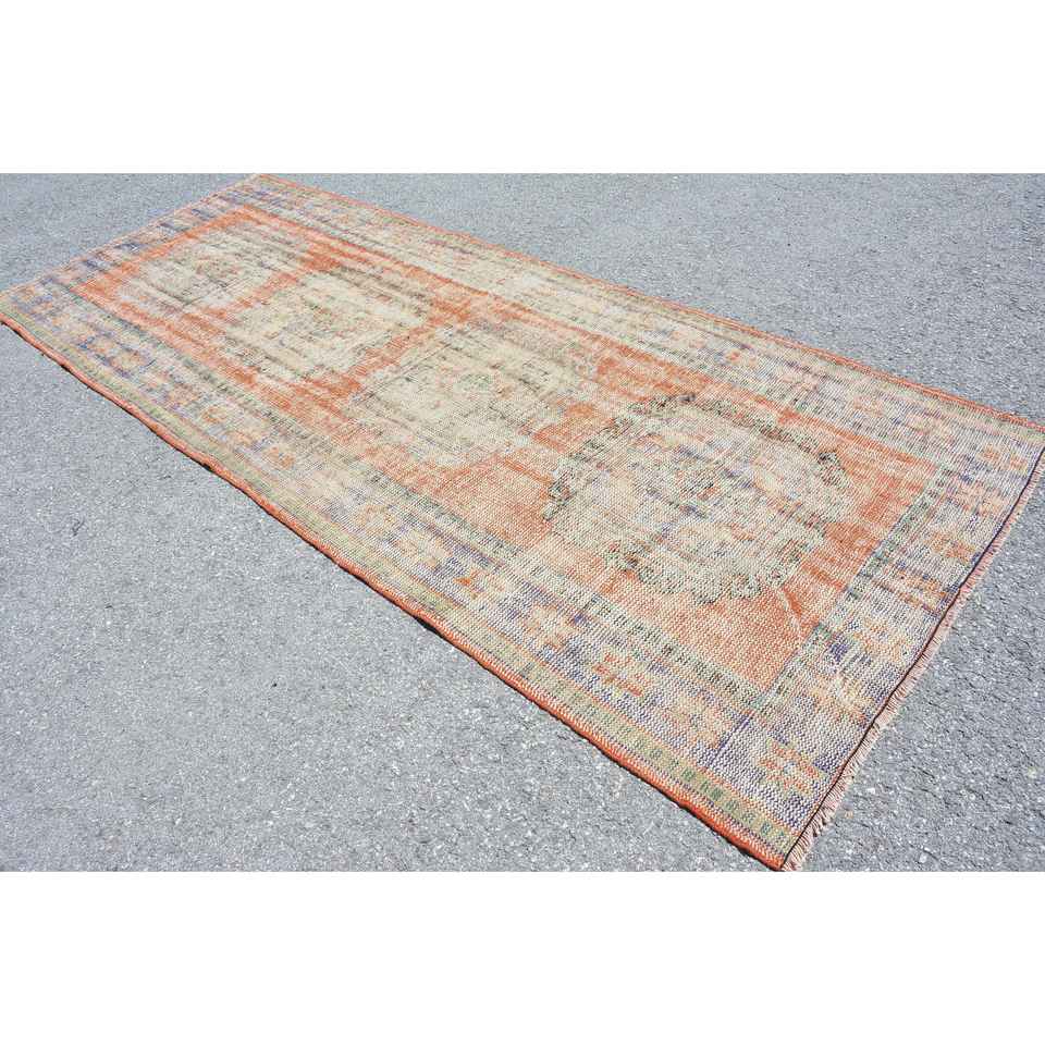 Tapis turc 4,6 x 10,9 pieds, grand tapis vintage, tapis en laine à bordures orange et bleues