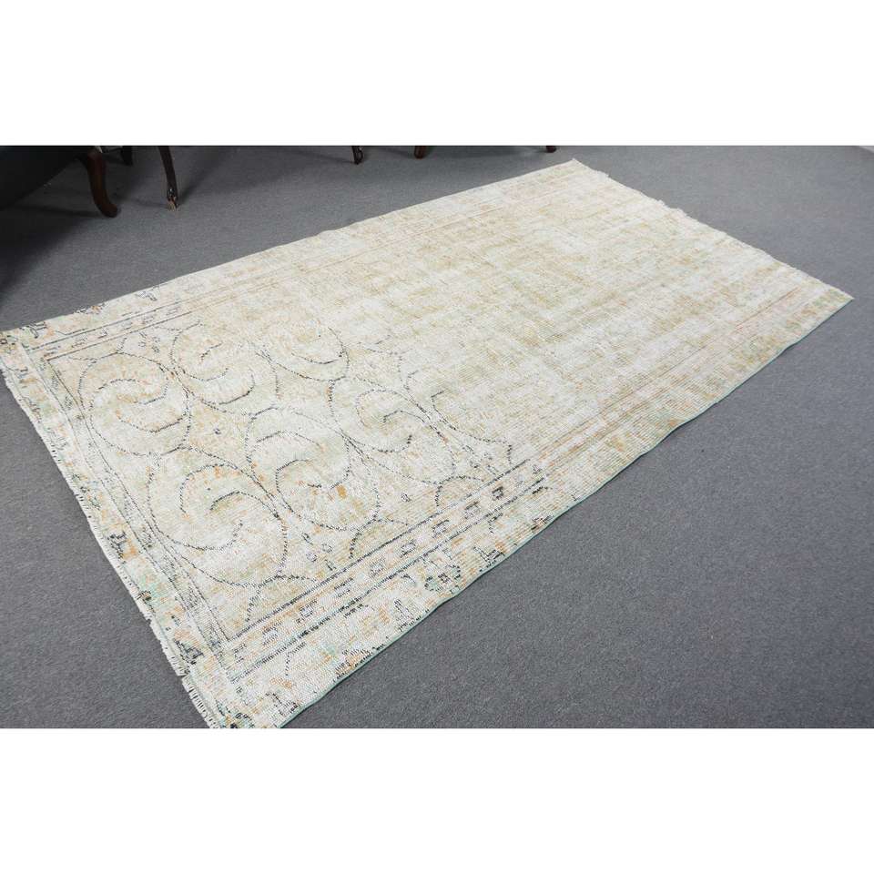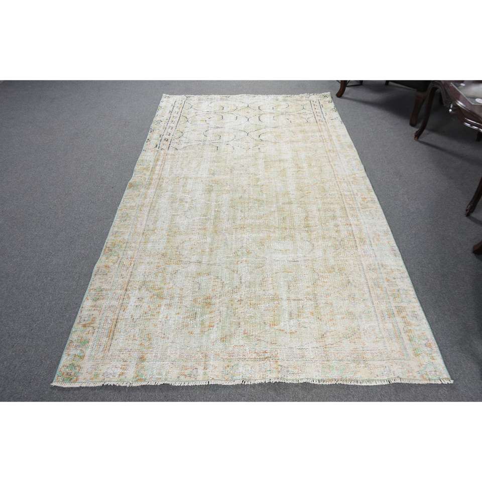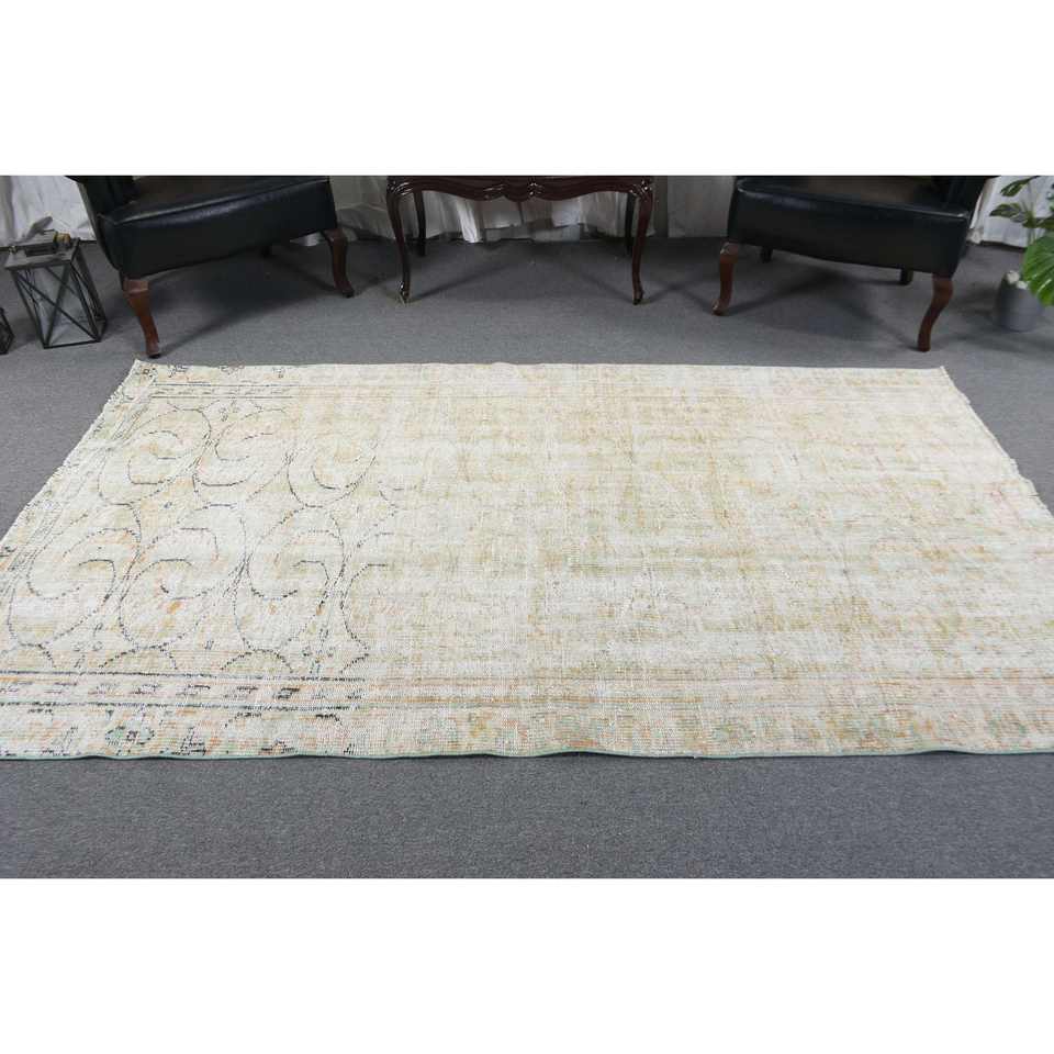Tapis de 4,6 x 8,2 pieds, tapis turc vintage, tapis oriental blanc et vert