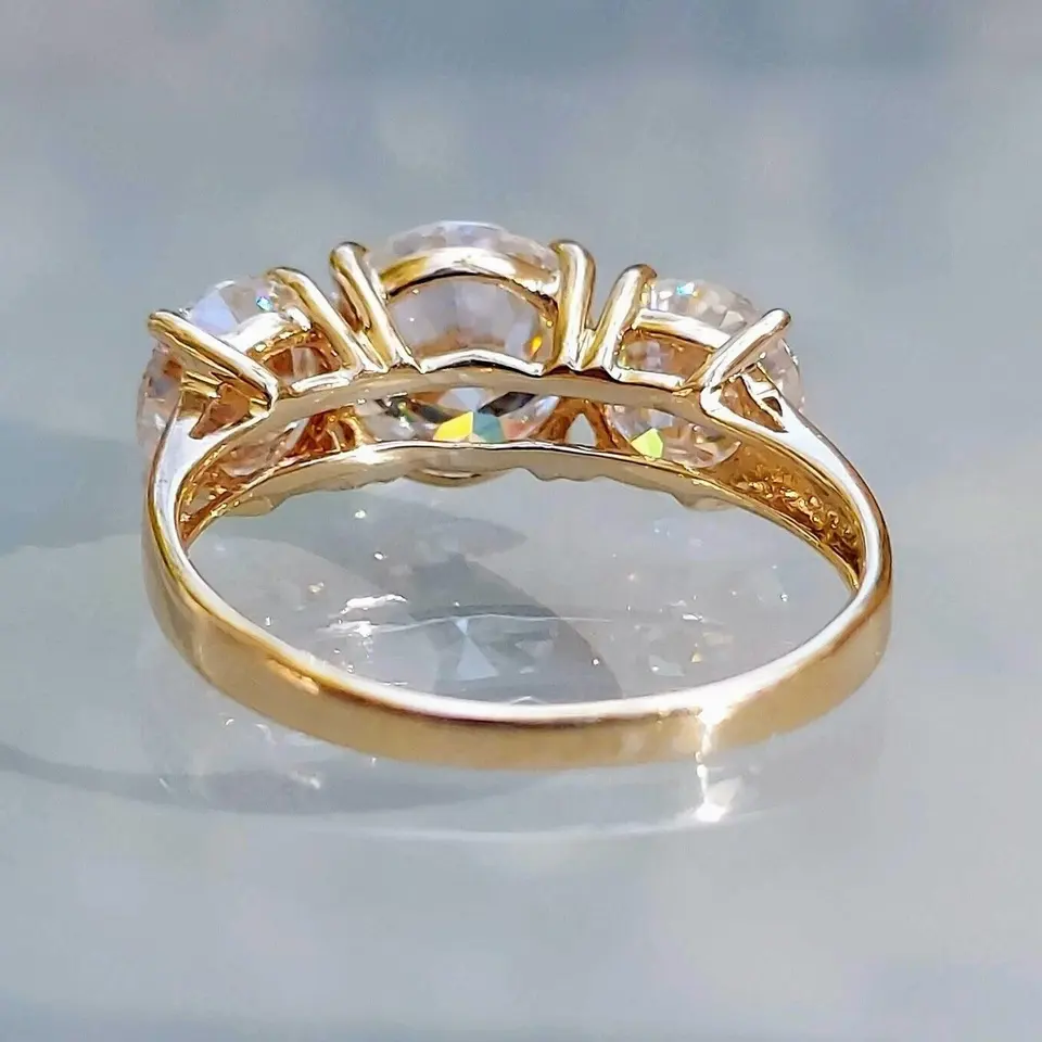 Bague de fiançailles à trois pierres en diamant de laboratoire taillé 4,73 TCW certifié IGI, or jaune massif 14 carats, style vintage
