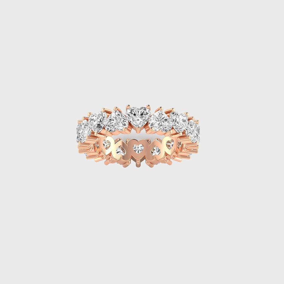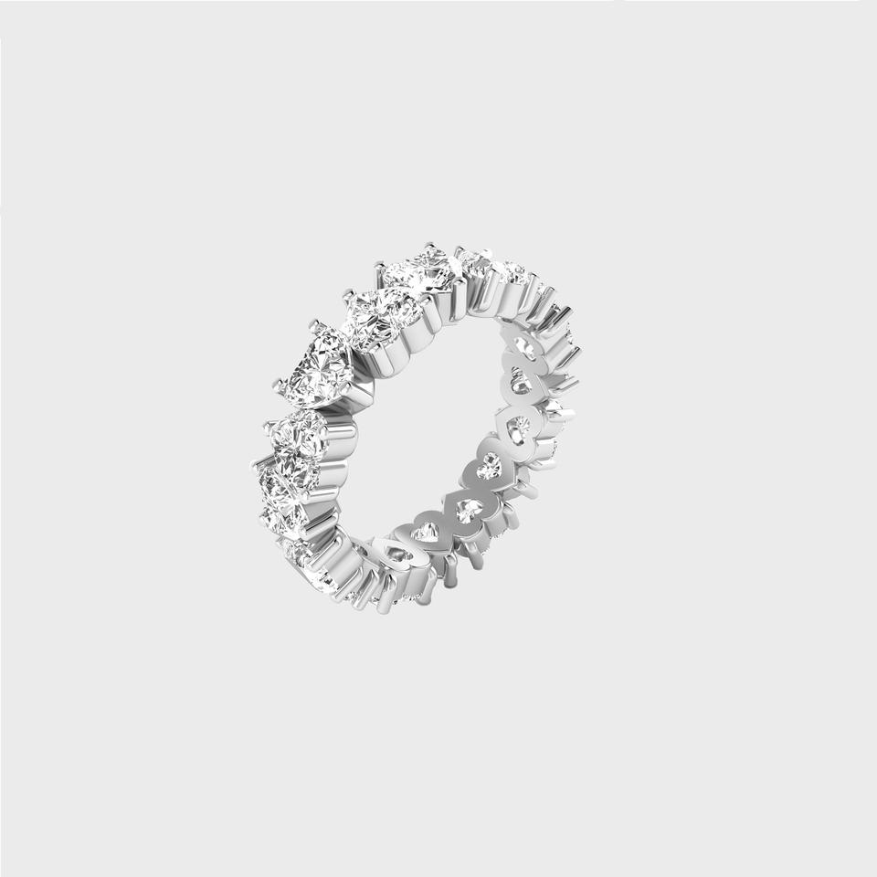 Bague d'éternité en or 18 carats avec 4,80 carats au total, taille cœur vintage, sertie de griffes, certifiée IGI