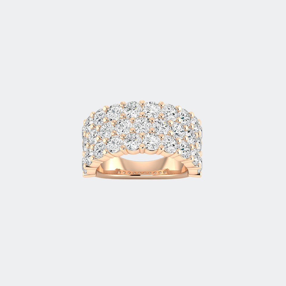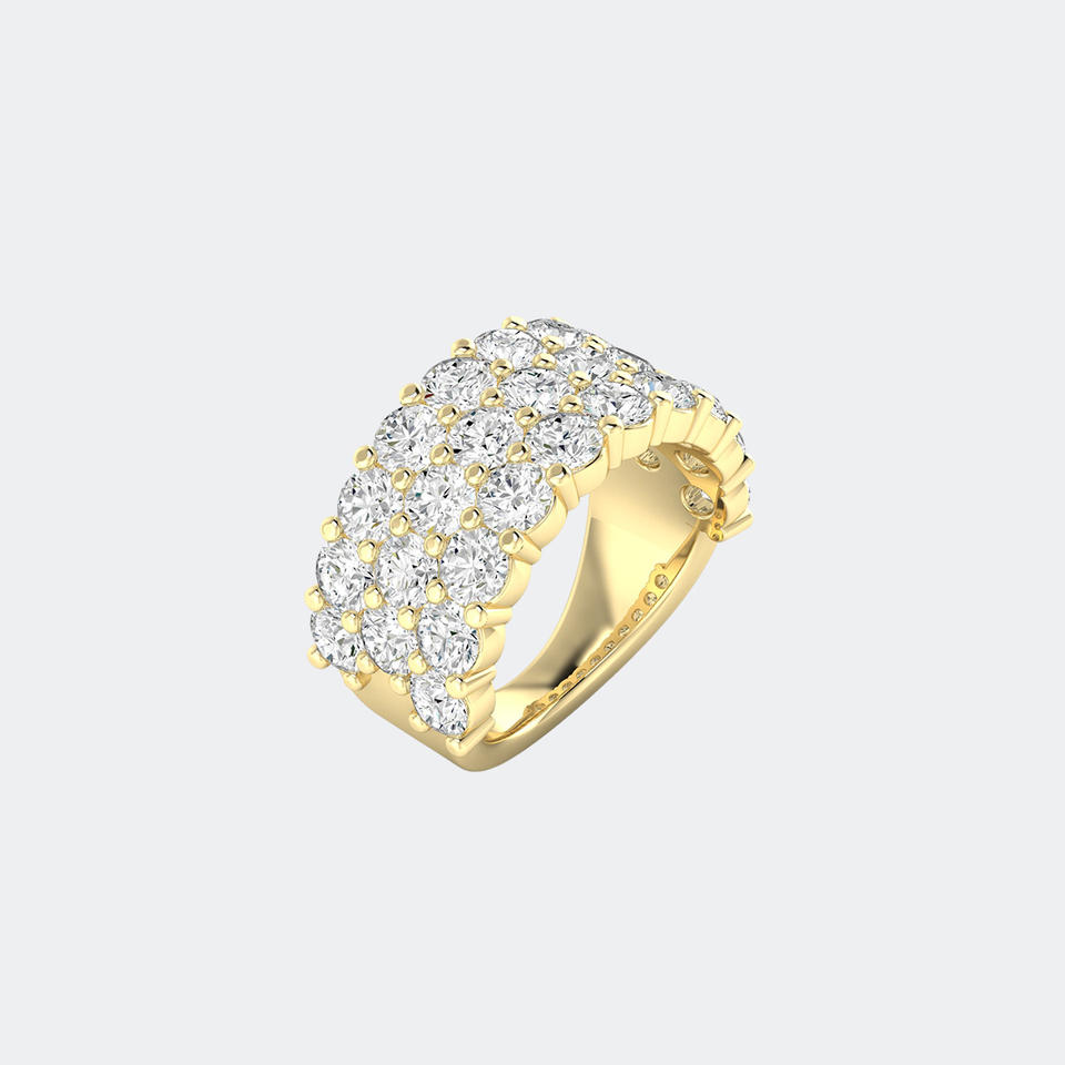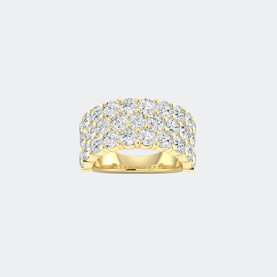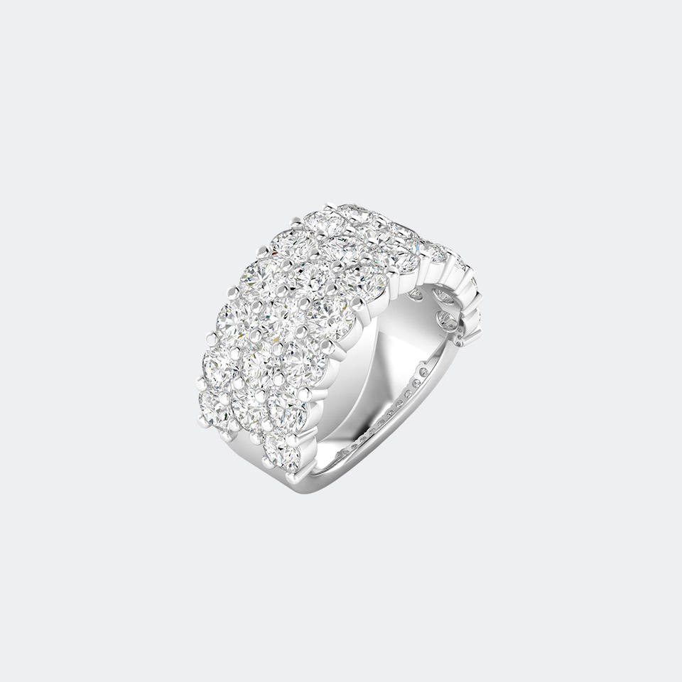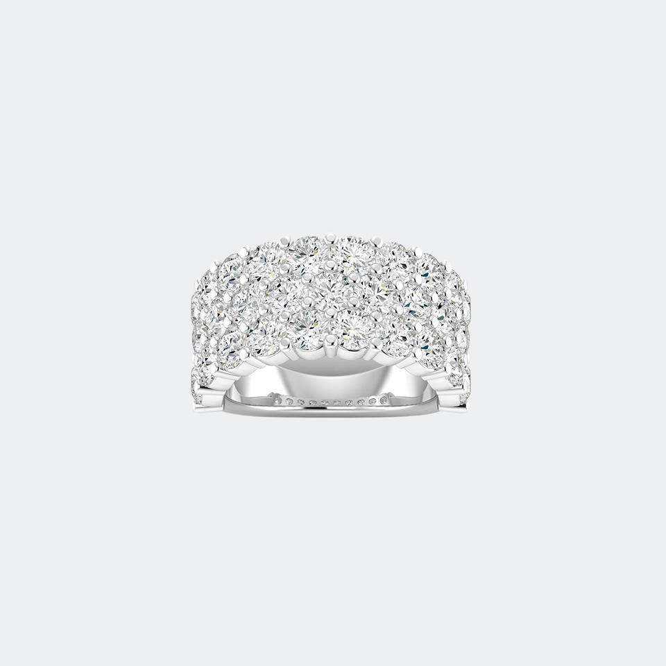 Bague Statement Triple Rangée Sertie Pavé de Pierres Rondes 4.80 CTW