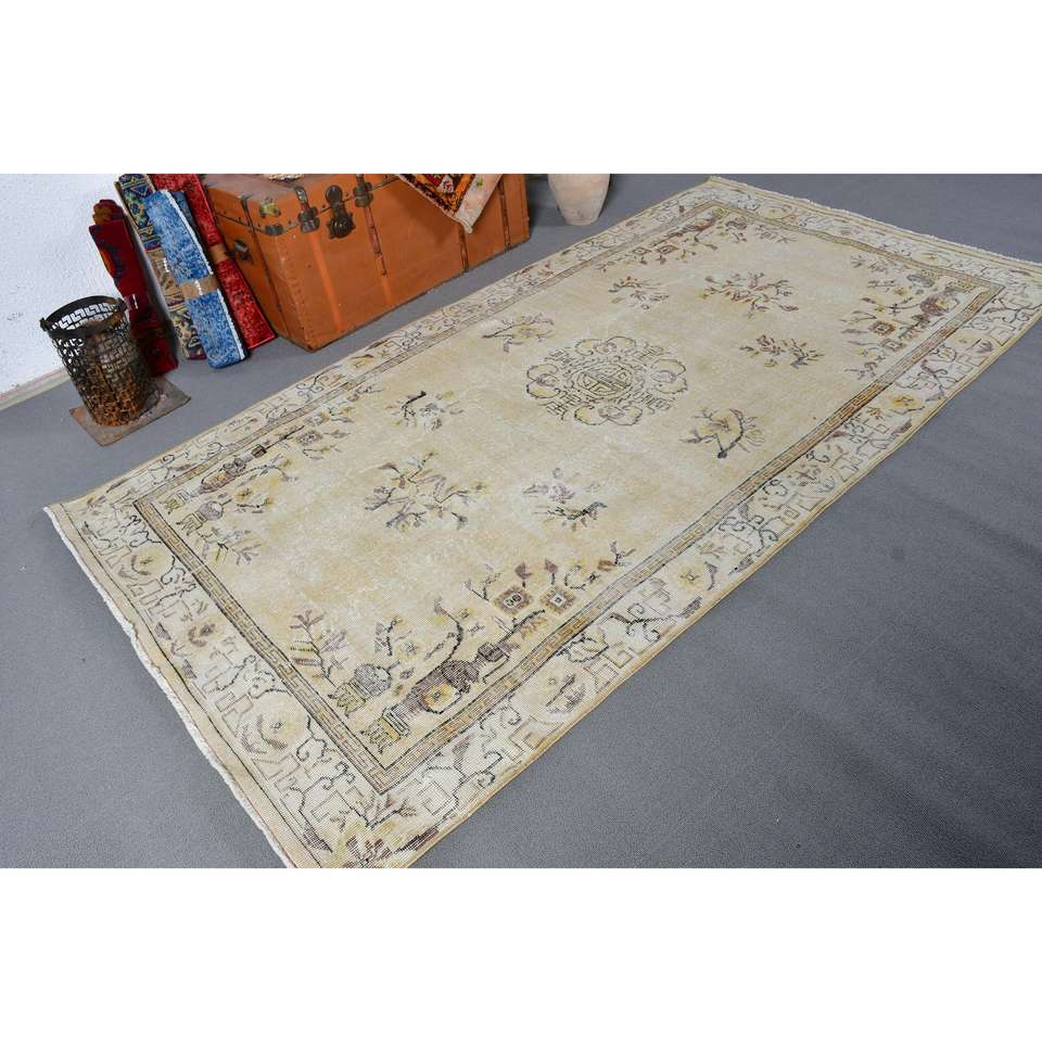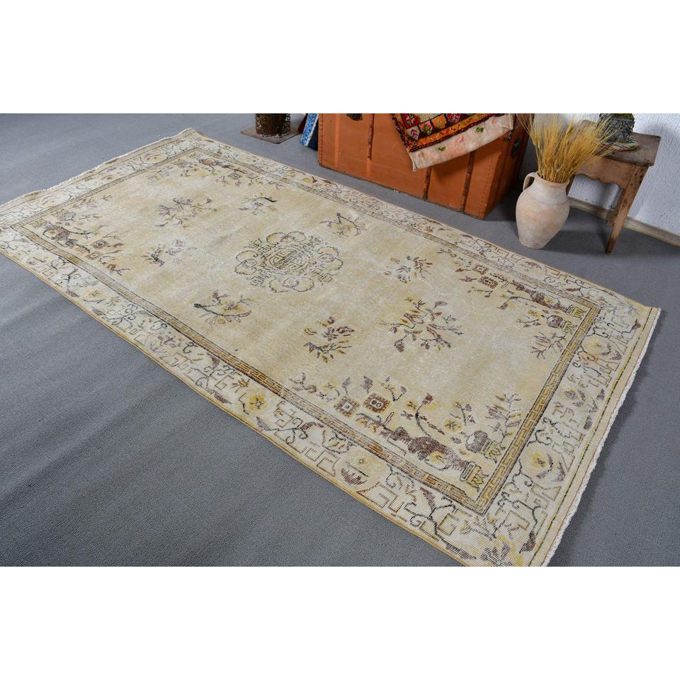 Tapis de 4,8 x 8,8 pieds, grand tapis turc vintage, tapis en laine jaune