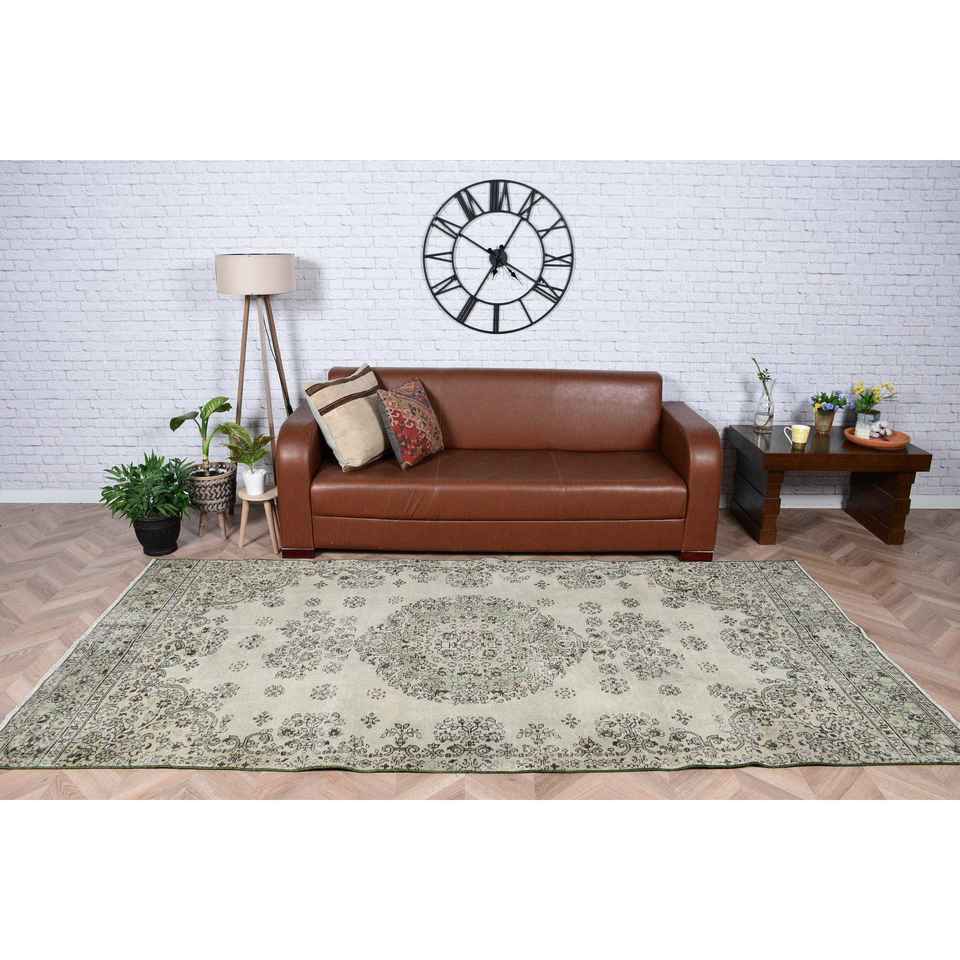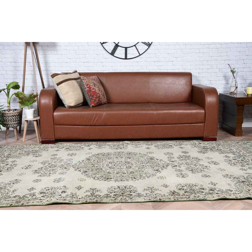 Tapis turc 4,9 x 9,7 pieds, grand tapis vintage, tapis vert à pois blancs