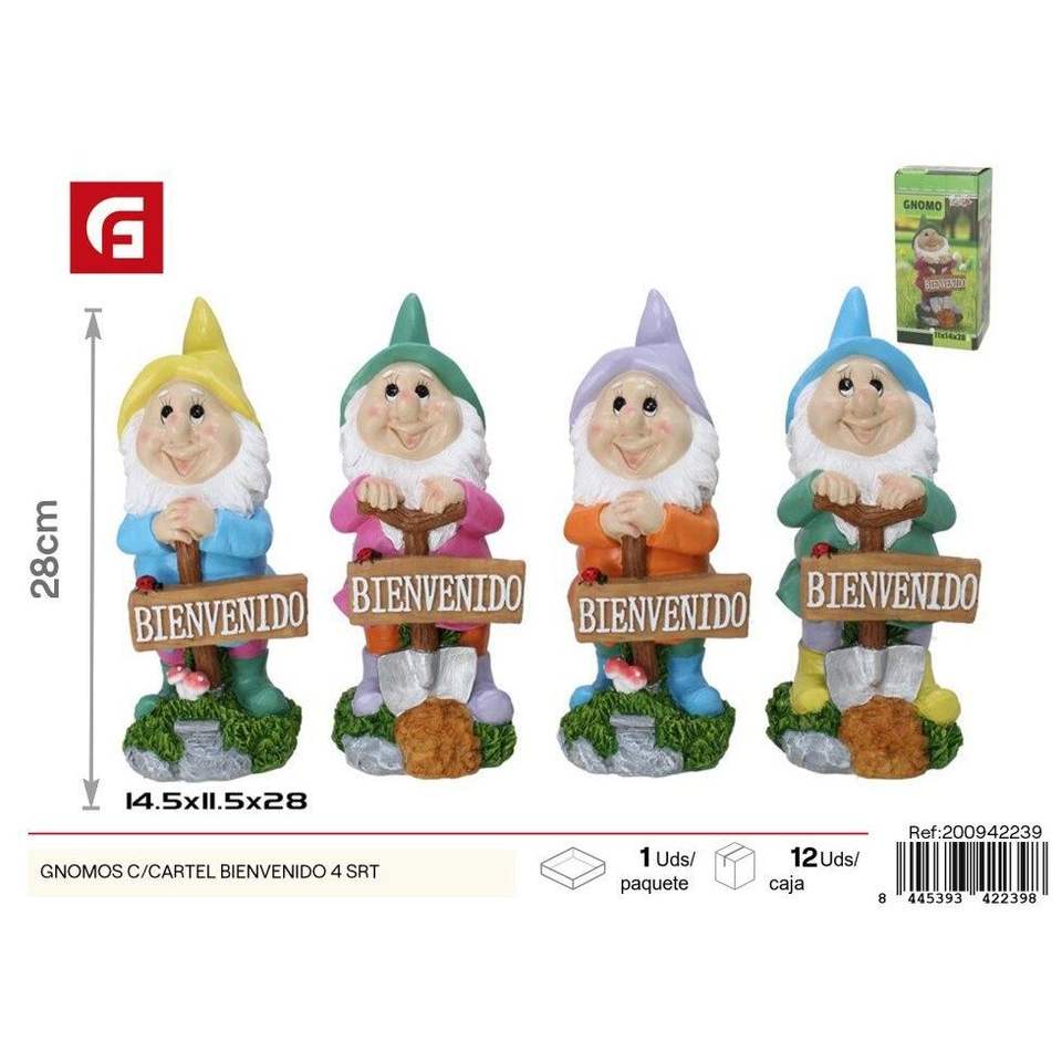 4 gnomes assortis avec panneau de bienvenue Décorations de jardin