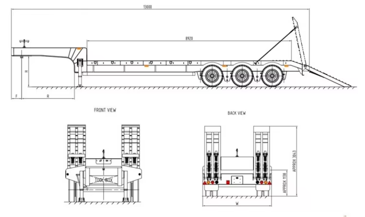 Semi-remorque surbaissée à col de cygne 4 essieux 100 tonnes à vendre