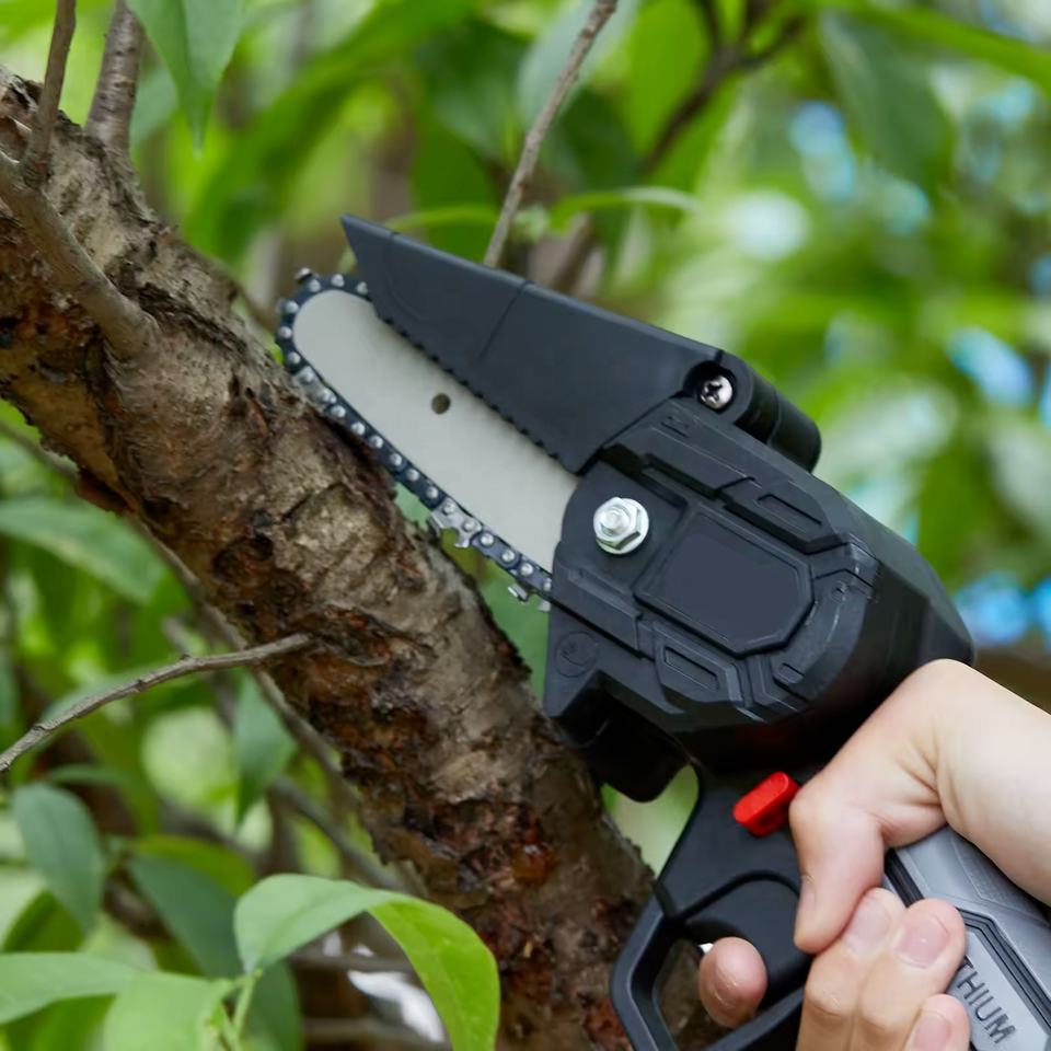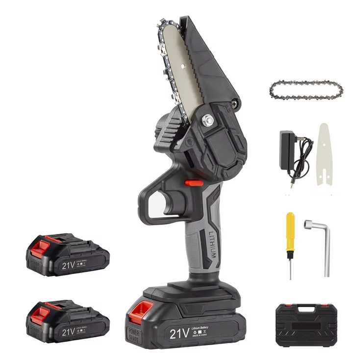 Mini scie à batterie 4 ''Mini scie à chaîne électrique sans fil 21V pour couper les branches de petits arbres Deux piles
