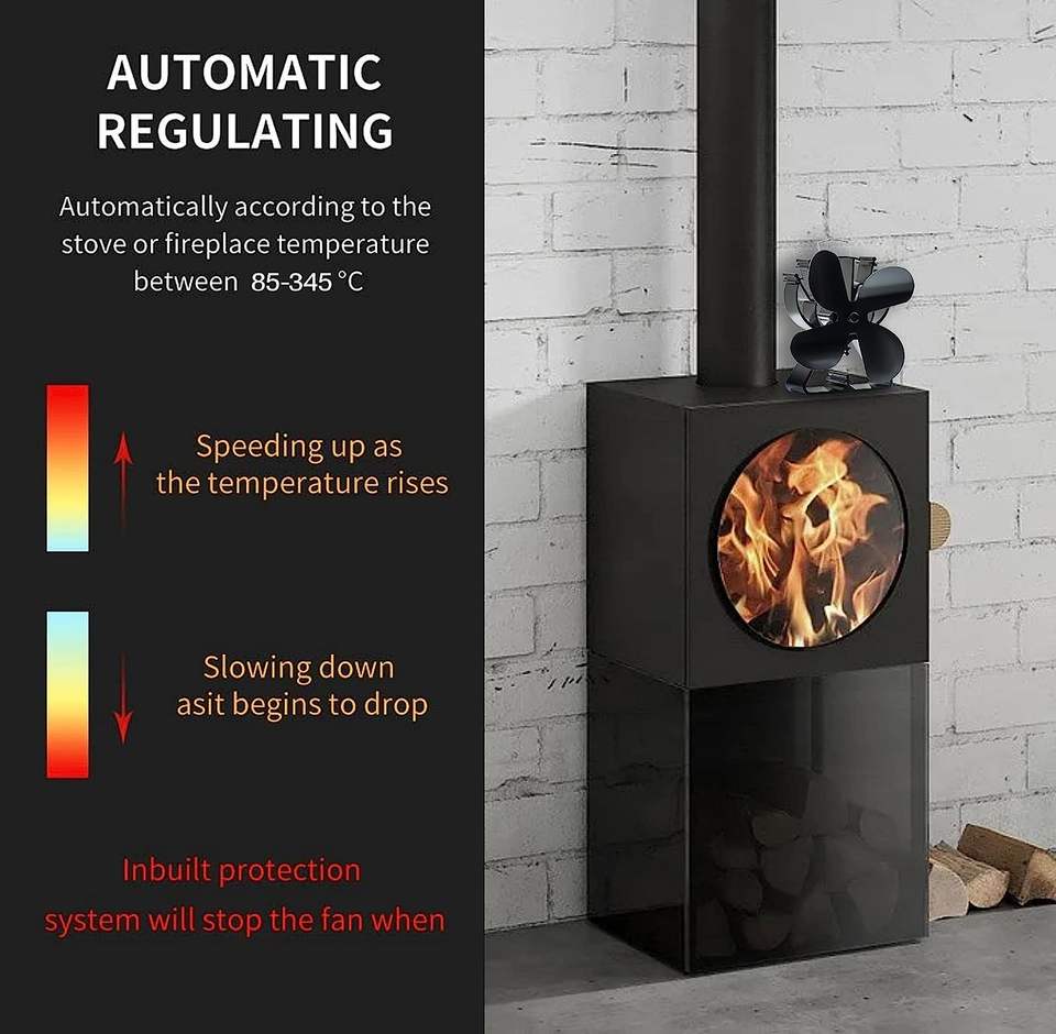 4 Blades Ecofan Stove Fan Eco Stove Fan Heat Powered Wood Free Spare Parts House Use Stove Fam Household Black Hard Anodized 2.5