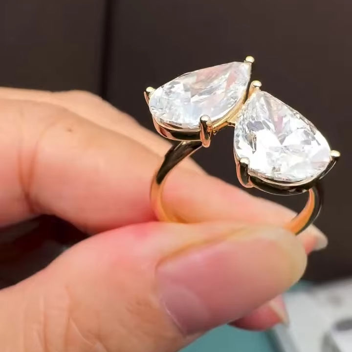 Bague de fiançailles certifiée IGI en or 14 carats 4 carats E VVS2 Toi Et Moi Poire Poire Diamants Coupe Deux pierres Solitaire Bague de mariage Fête