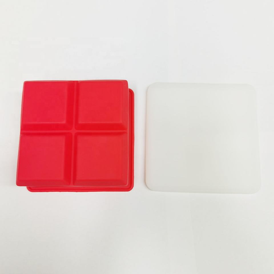 Grand plateau à glaçons en silicone rouge 4 Cavs avec congélateur en acier inoxydable Moule à glaçons carré pour whisky Accessoires de bar