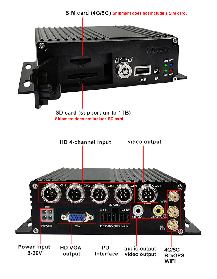 Enregistreur vidéo numérique 4 canaux 1080P avec vision nocturne, système DVR mobile H.264, carte SD, moniteur pour voitures, camions, véhicules