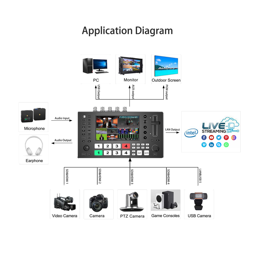 HDM I INx4 SDI INx4 USBx1Entrée vidéo