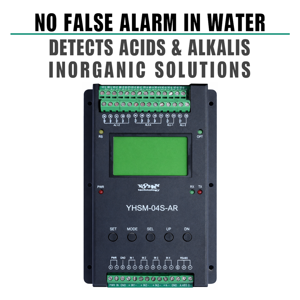 Module de contrôle de détection de fuites à 4 canaux pour acides et alcalis | RS-485 Modbus | Système d'alarme de fuite de produits chimiques industriels