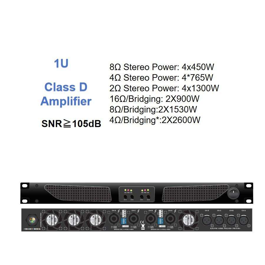 Amplificateur de puissance à 4 canaux doté d'une configuration simple et d'une sortie équilibrée convenant au cinéma maison et aux petites configurations