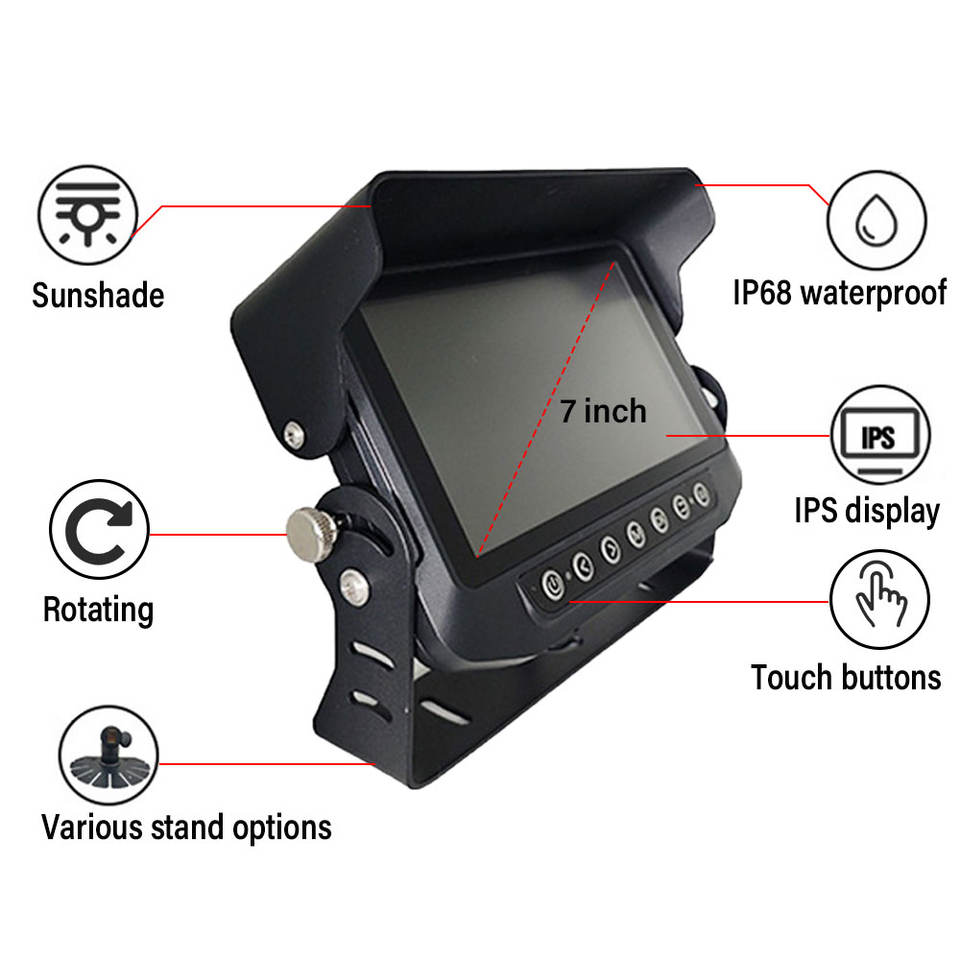 Kit de surveillance robuste 4 canaux pour véhicule avec 4 caméras de recul et connecteurs aéronautiques pour la sécurité des chantiers et des flottes