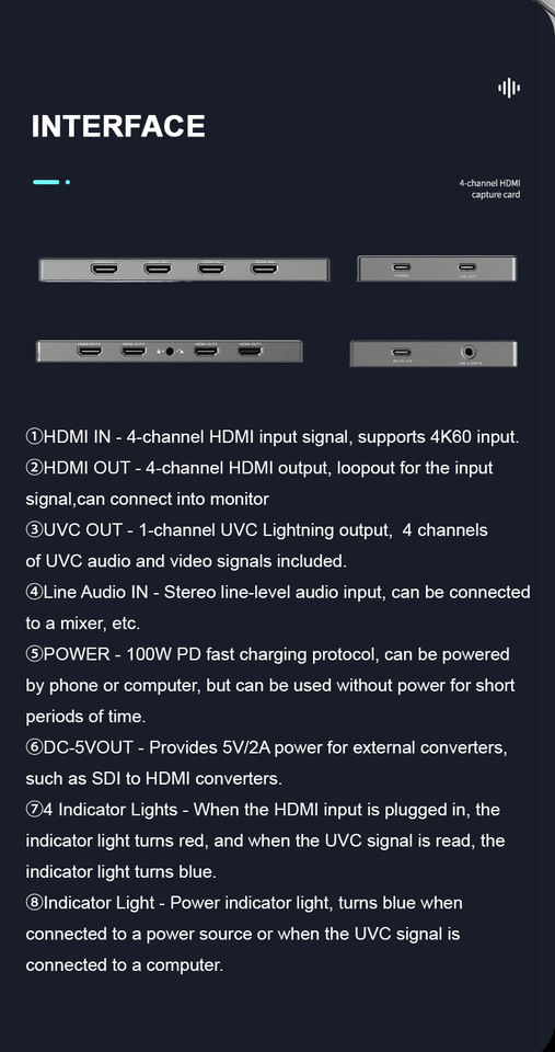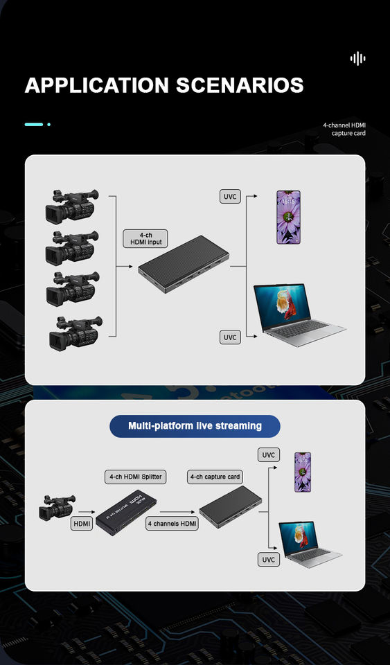 Carte de capture vidéo USB HD 4k 60 Fps MP4 à 4 canaux pour OBS/Vmix Production vidéo multi-systèmes d'exploitation