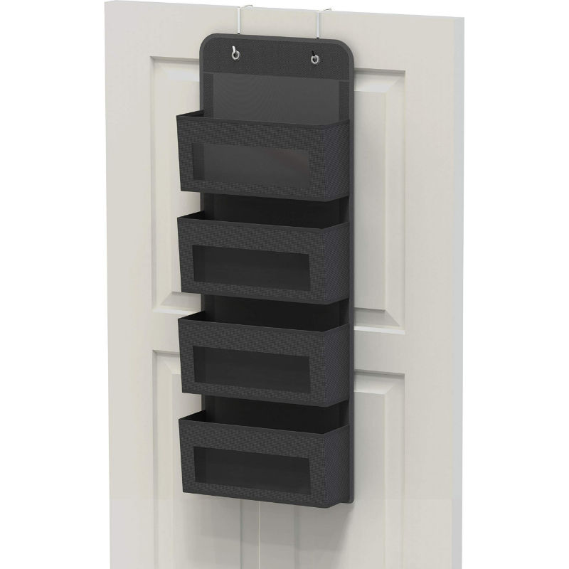 Organisateur de rangement mural à suspendre en tissu avec 4 poches transparentes pour porte