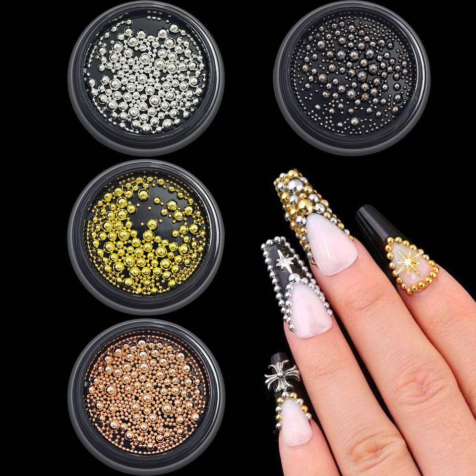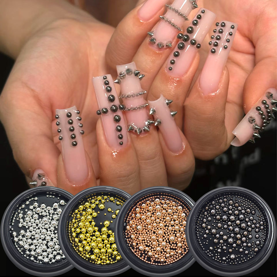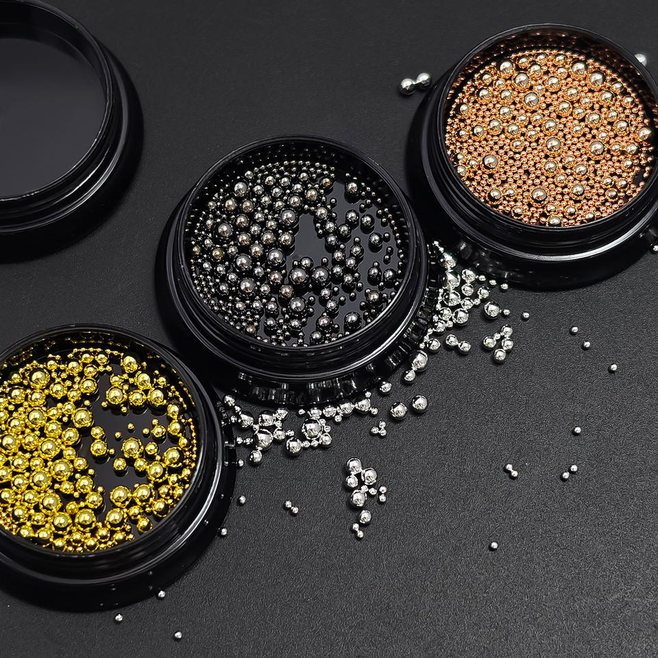 Ensemble de 4 boîtes de billes circulaires en acier de couleur, petites boîtes à disques, fournitures de luxe pour la décoration d'ongles DIY