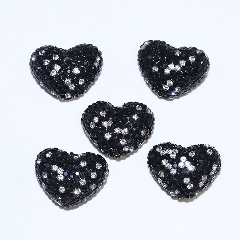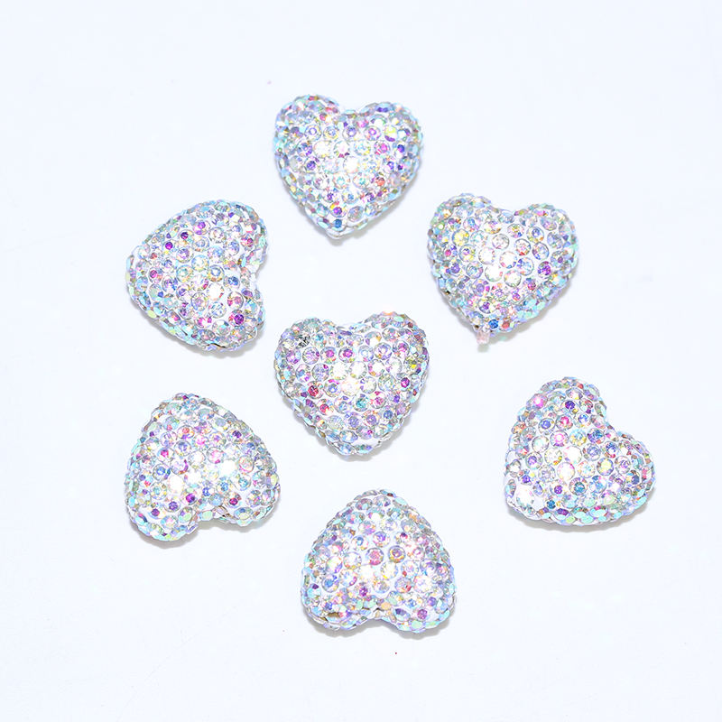 Colorful Perles en argile en forme de cœur avec strass 10×12/13×15/18×24 mm pour bijoux DIY, min. 100 brins/couleur/taille