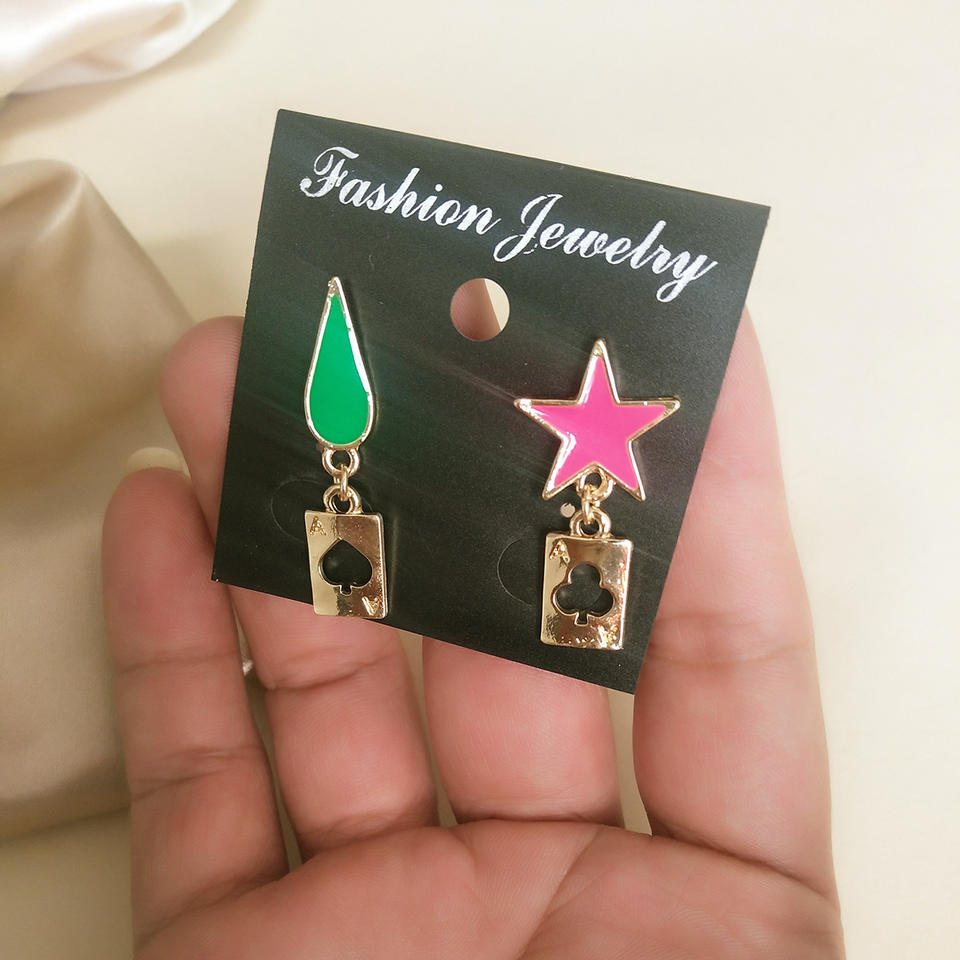 4 Colors High Quality Metal Charm Poker Card Earrings for Anime Hunter Character Hisoka Cosplay
