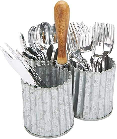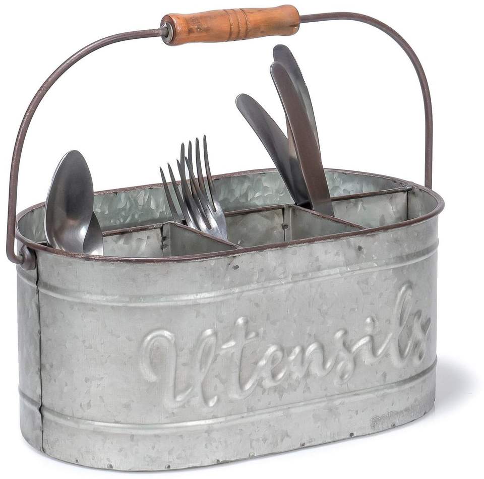 Porte-ustensiles en métal à 4 compartiments, organiseur de couverts avec poignée en bois, rangement autoportant pour la cuisine et la maison