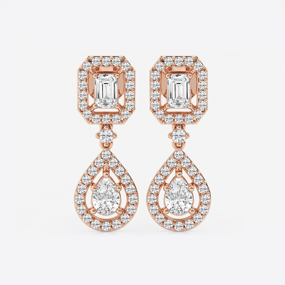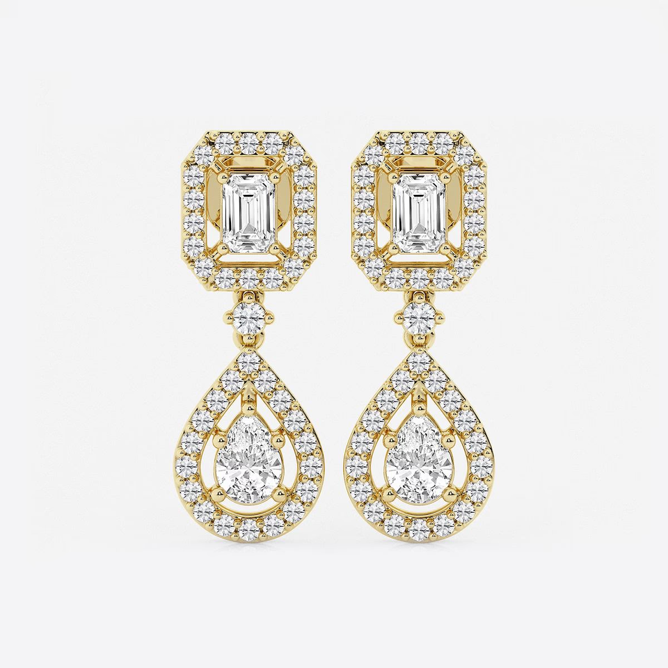 Boucles d'oreilles pendantes en émeraudes et diamants de laboratoire en forme de poire, 4 carats, bijoux élégants et tendance pour femmes, design luxueux et remarquable