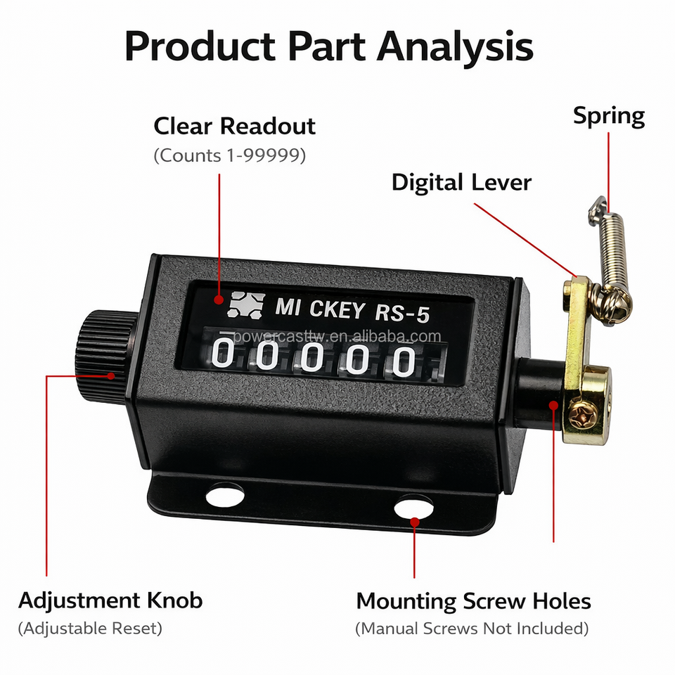 Compteur mécanique RS-4 à 4 chiffres avec réinitialisation zéro et action réversible, noir, Taïwan