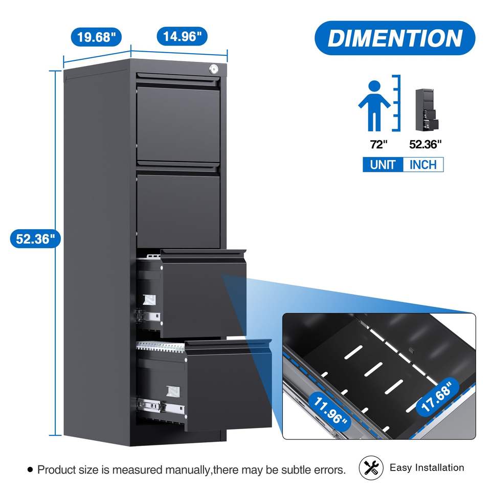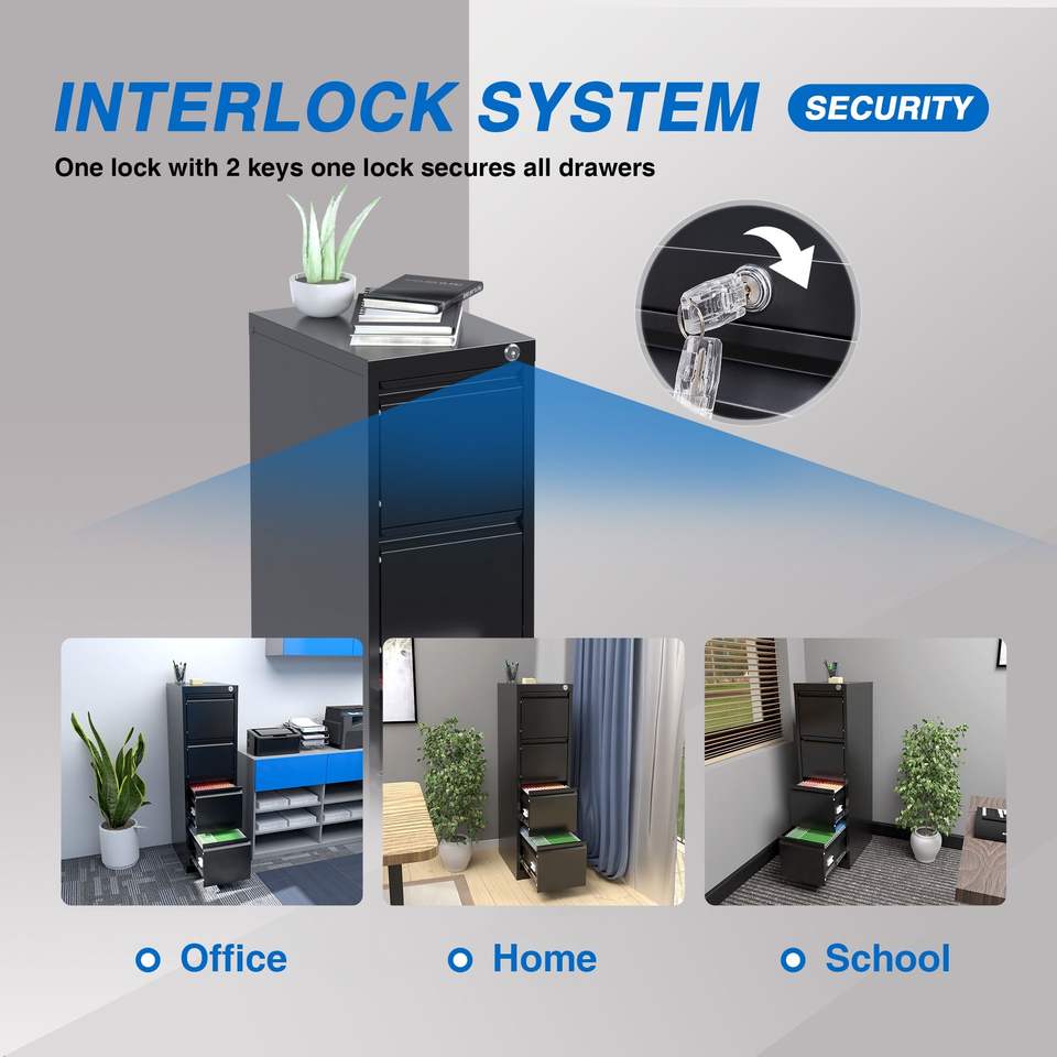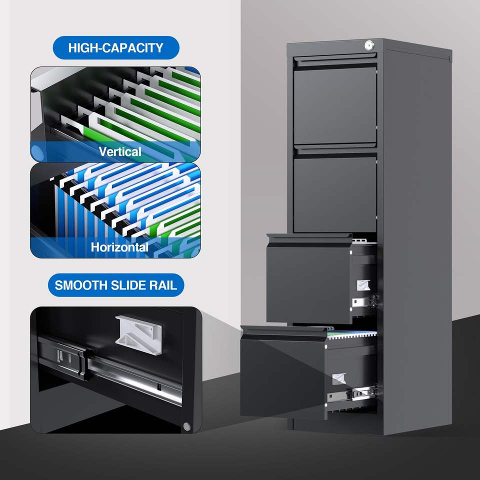 Armoire de rangement verticale en métal à 4 tiroirs, verrouillable, format A4/Lettre/Légal, pour bureau ou domicile, armoire à dossiers en acier
