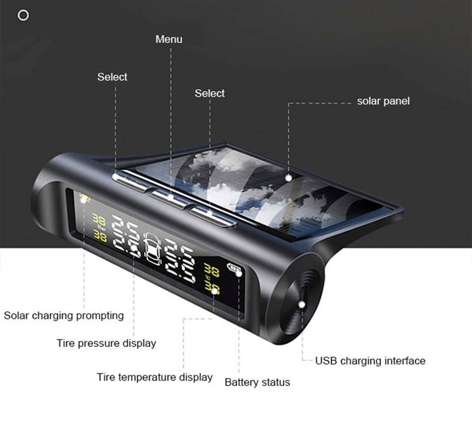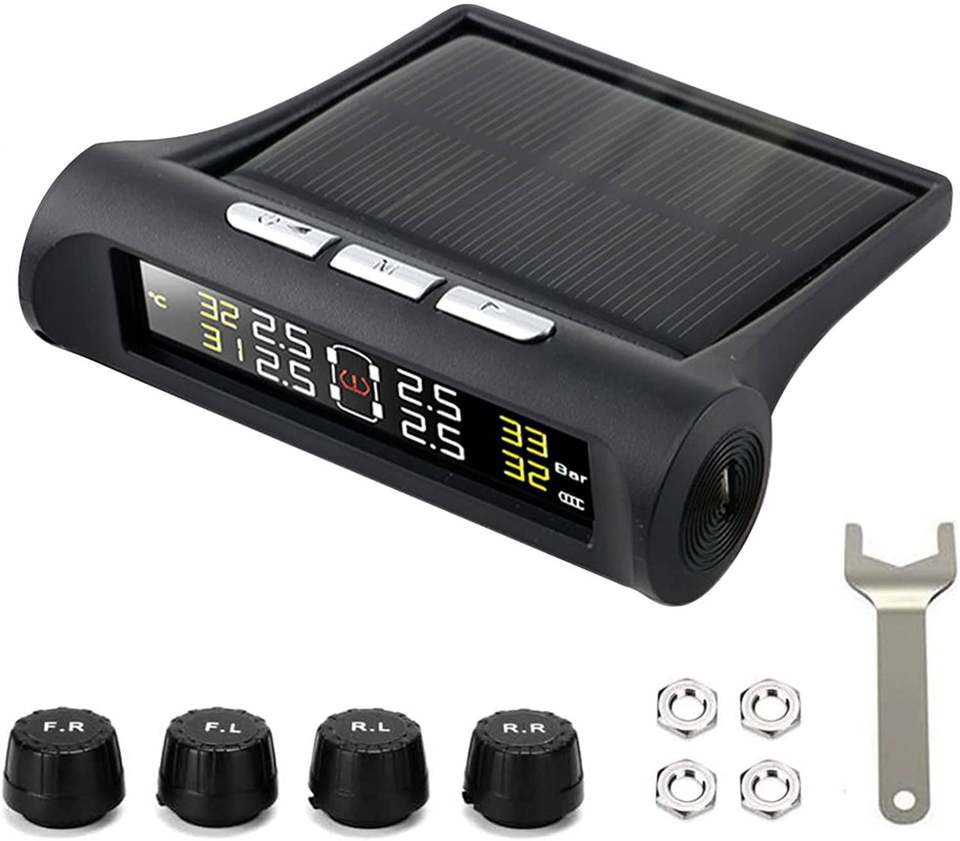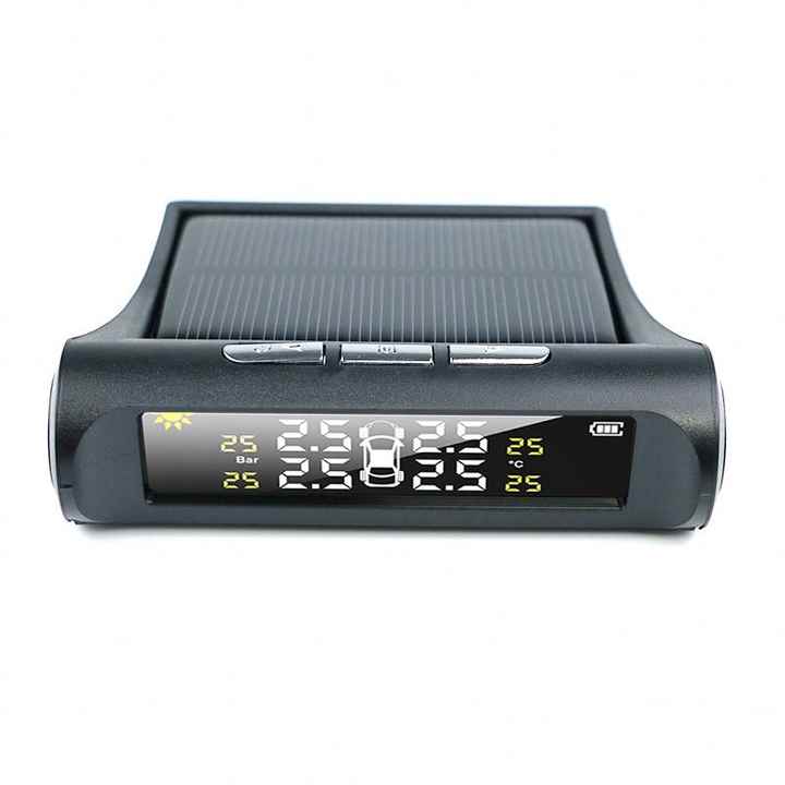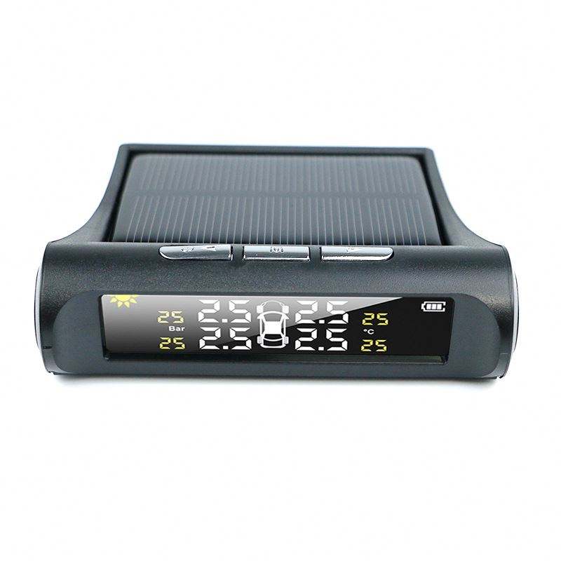 Système de surveillance de la pression des pneus de voiture sans fil à énergie solaire avec 4 capteurs externes, GPS, piles alcalines, plastique, TPMS, écran LCD