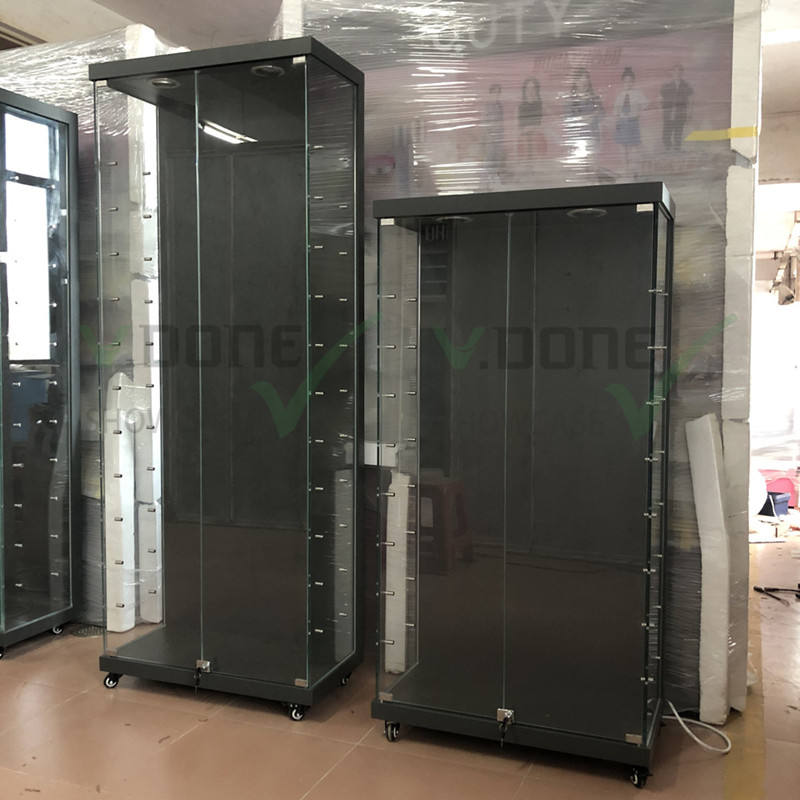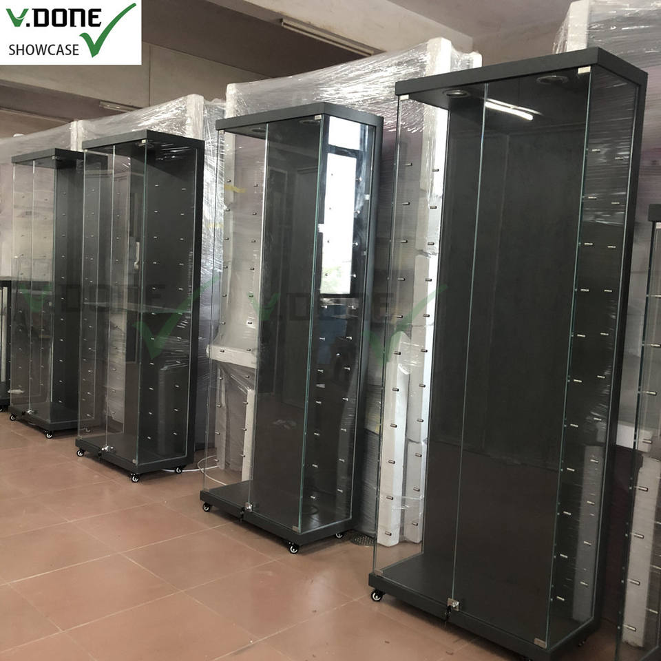 Présentoir à bijoux délicat de 4 pieds avec support de miroir et étagère en verre réglable Présentoir pour magasin de fumée
